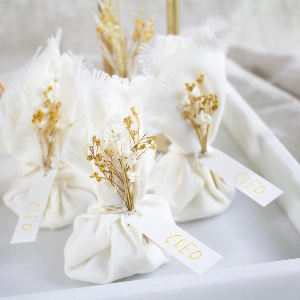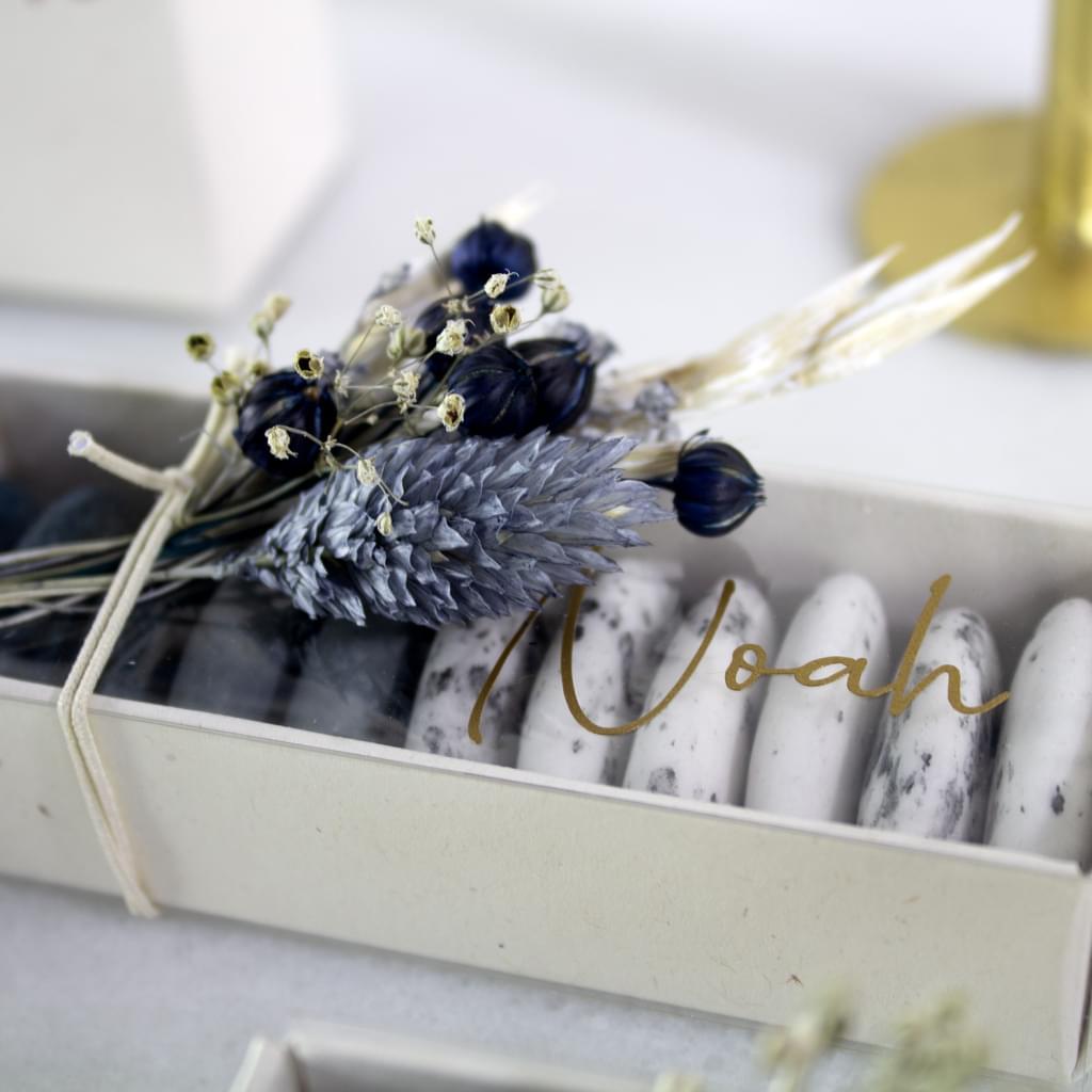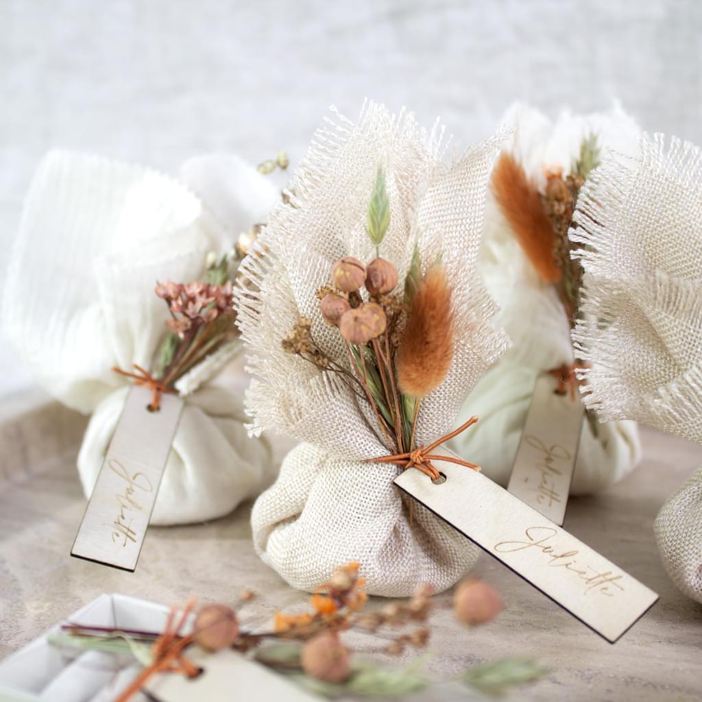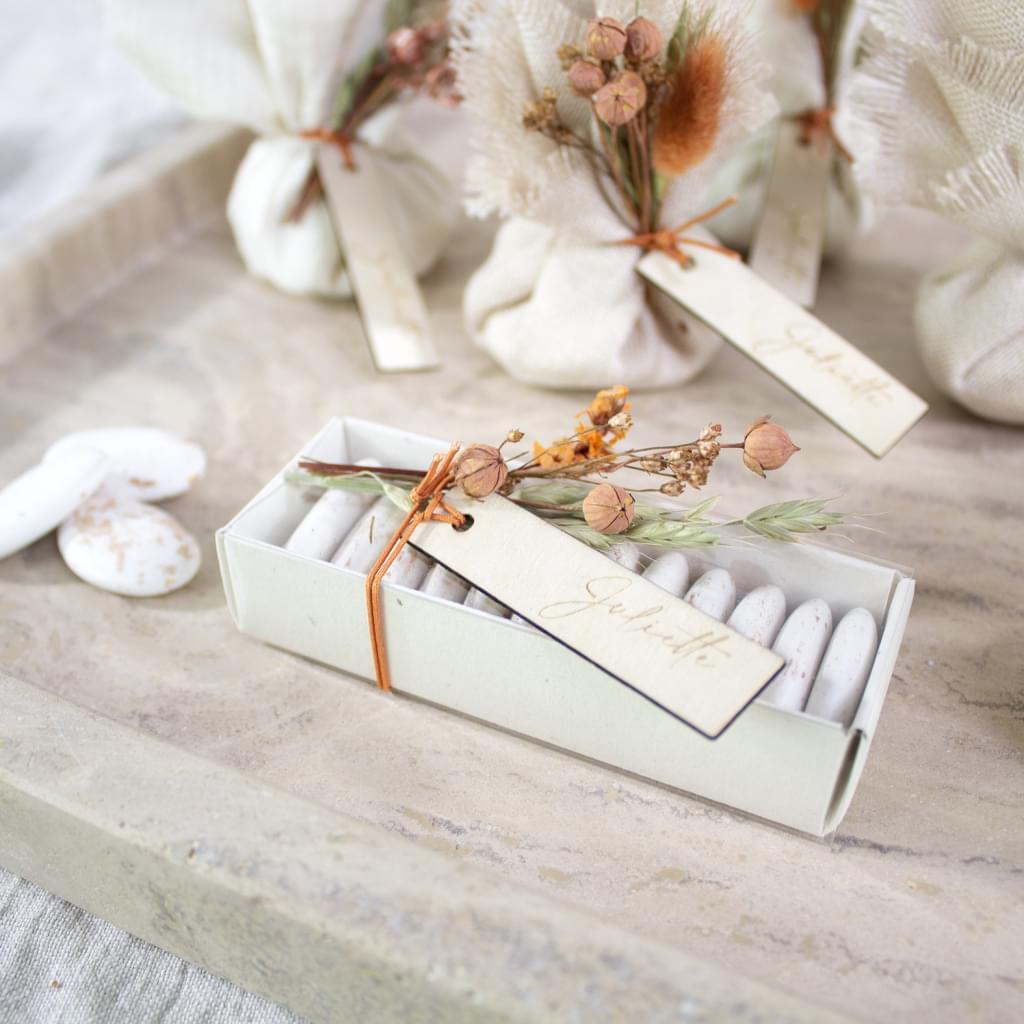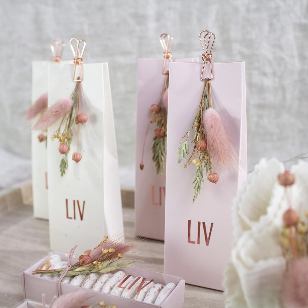 In nauw overleg met jullie nemen we elk aspect van de doopsuiker door, van de keuze van de verpakking tot aan de vulling, en natuurlijk ook de afwerking. Denk hierbij aan de keuze van (droog)bloemen, lintkleuren, stickers, en bedrukking. Ook de presentatie wordt zorgvuldig besproken.