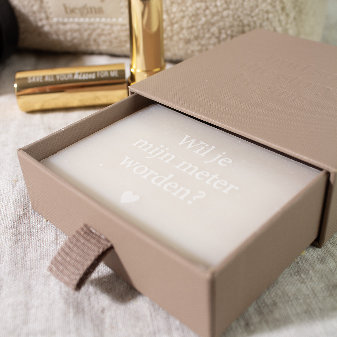 Wil je mijn meter worden? Een belangrijke vraag die je met met veel liefde en zorg aan iemand stelt. We stelden daarom een pakketje samen met zorgvuldig uitgekozen producten:
