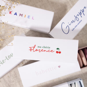 Een klassieker onder de doopsuikerverpakkingen zijn de kartonnen doosjes. Kies hierbij voor een kleur die mooi aansluit bij je geboortekaartje. Laat je graag de kleuren van de suikerbonen zien? Kies dan voor een schuifdoosje met mica sleeve. Ga voor een klassiek hoog doosje met droogbloemetje, een koekendoosje en snoepdoosje. Werk je doosje af met een lintje of clipje, droogbloemetje, vinylsticker of een gegraveerd label. Twijfel je over de kleuren? Dan kan je ook een stalenpakketje bestellen.