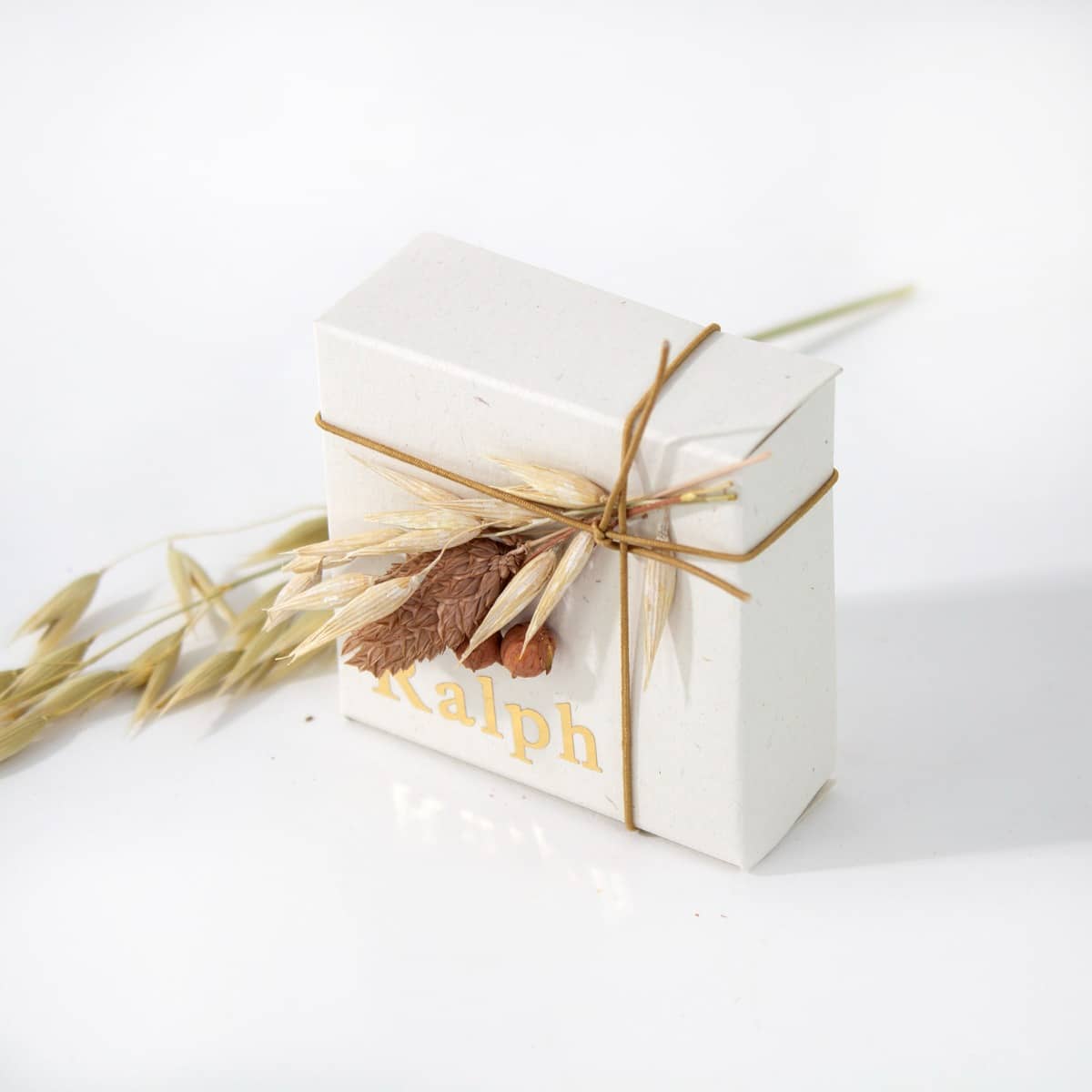 Hou het strak met een enkel elastiek en vinyl sticker of ga voor wat extra droogbloemen.