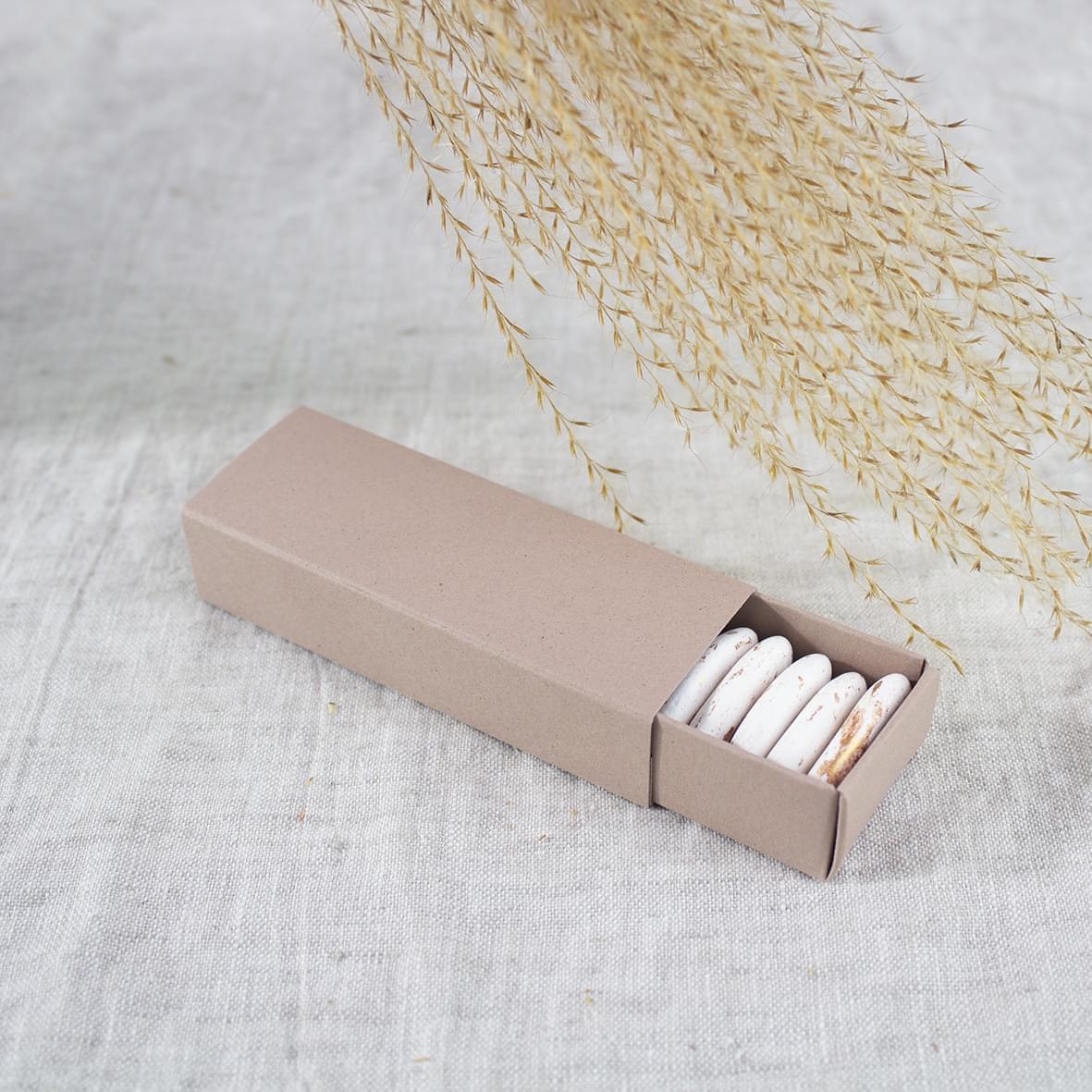 De suikerbonen passen mooi op een rijtje in het doosje.