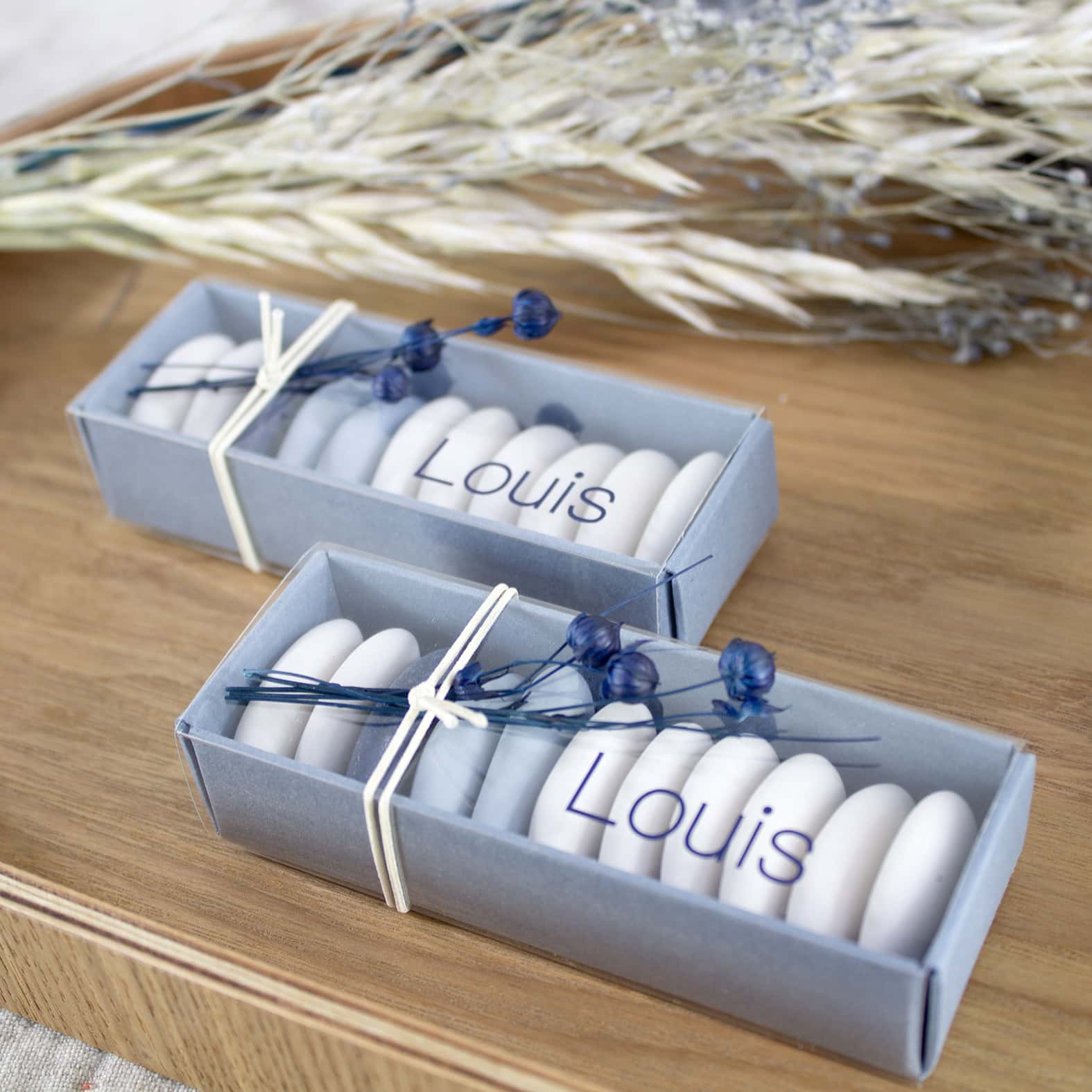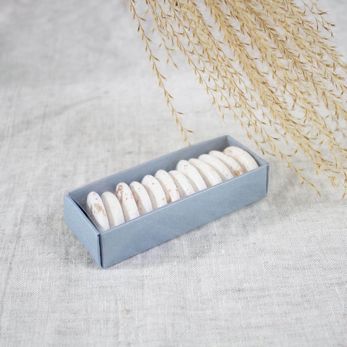 De suikerbonen passen mooi op een rijtje in het doosje.