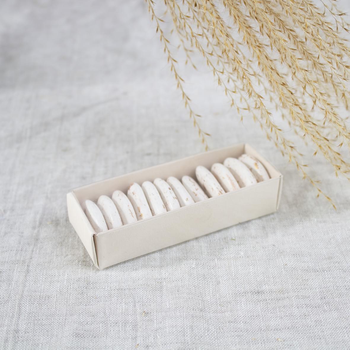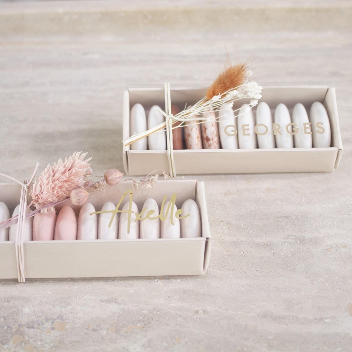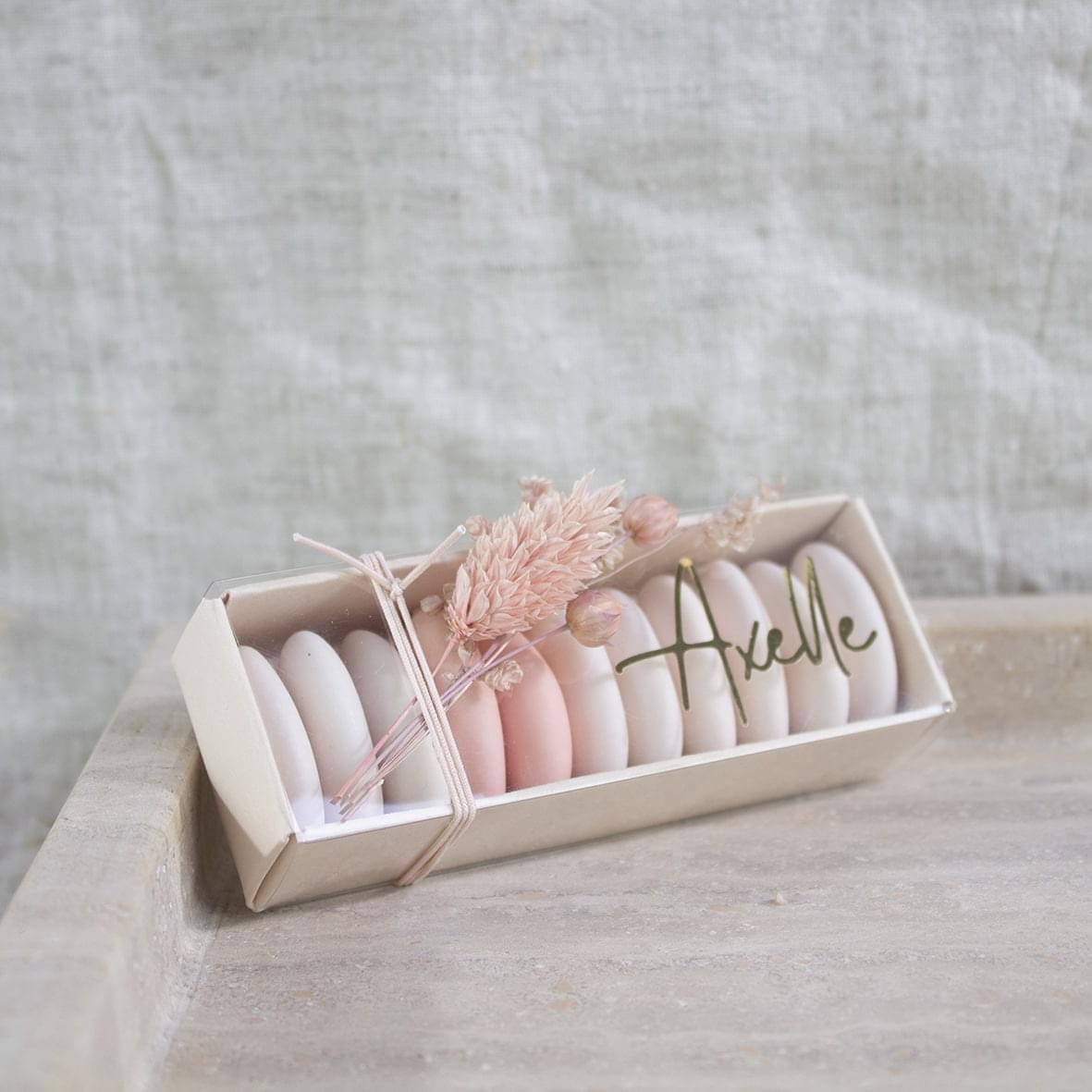 De suikerbonen passen mooi op een rijtje in het doosje.