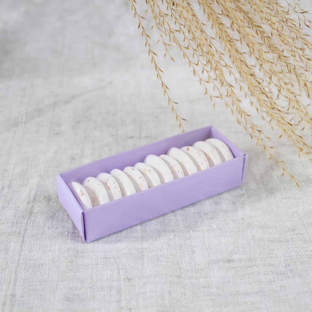 De suikerbonen passen mooi op een rijtje in het doosje.