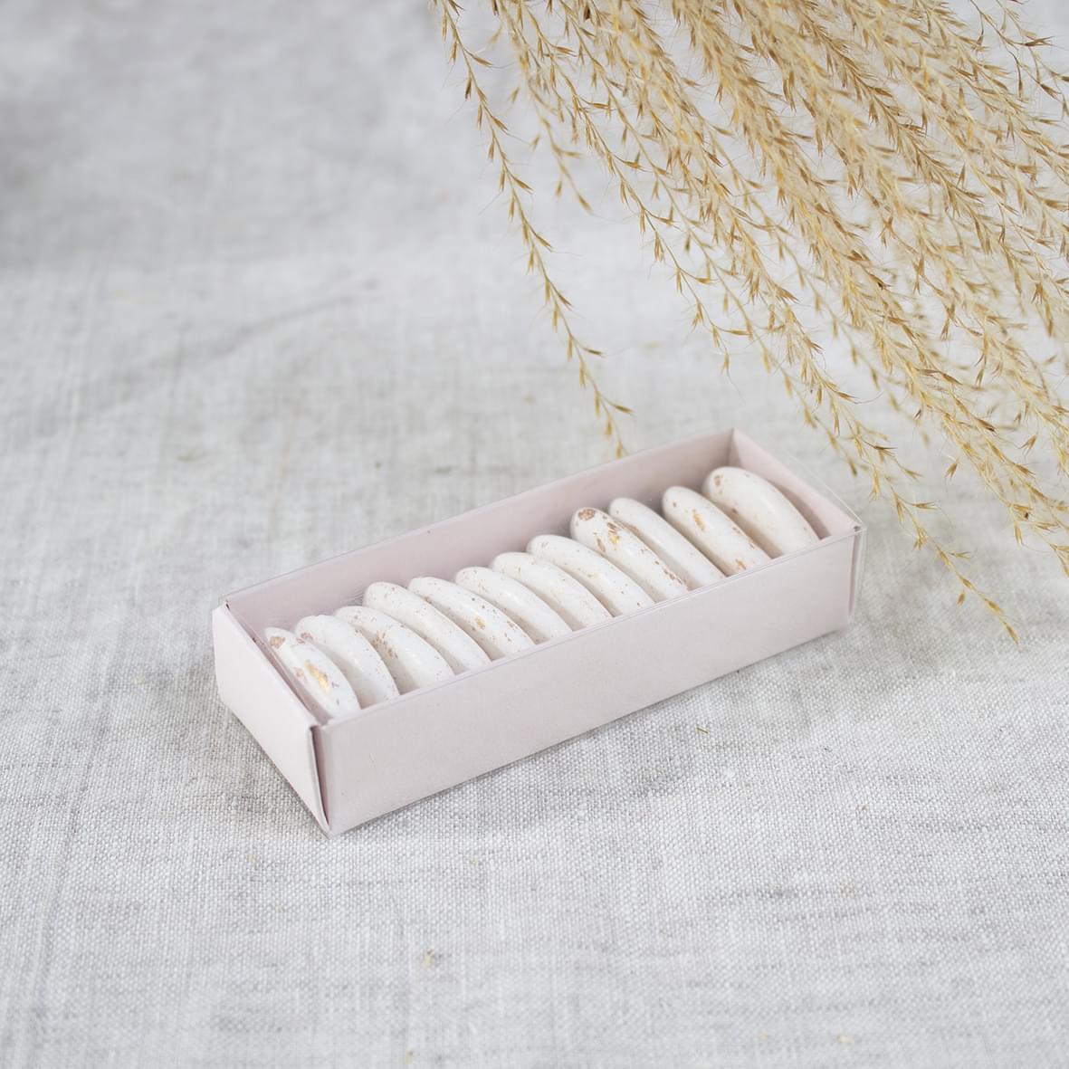 De suikerbonen passen mooi op een rijtje in het doosje.