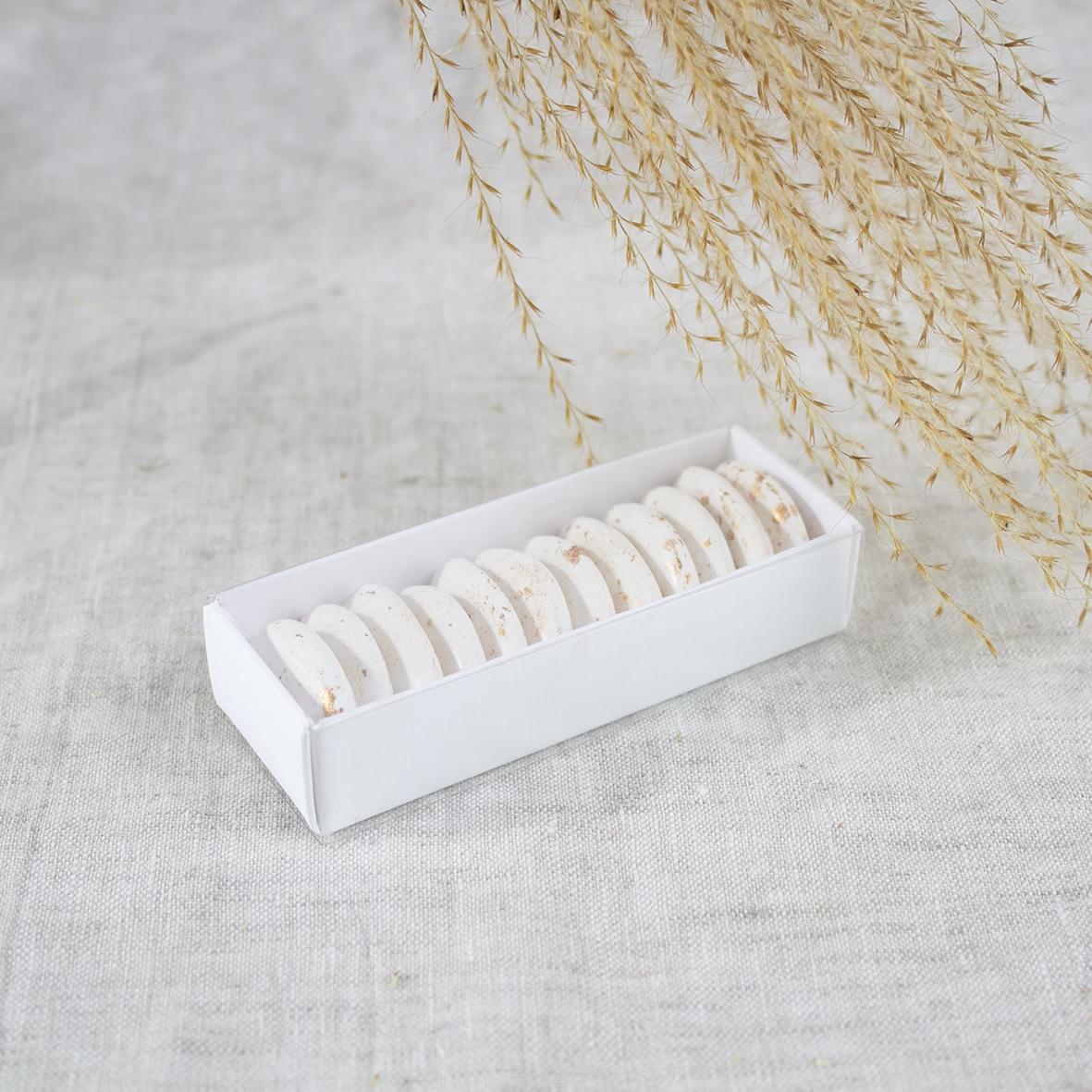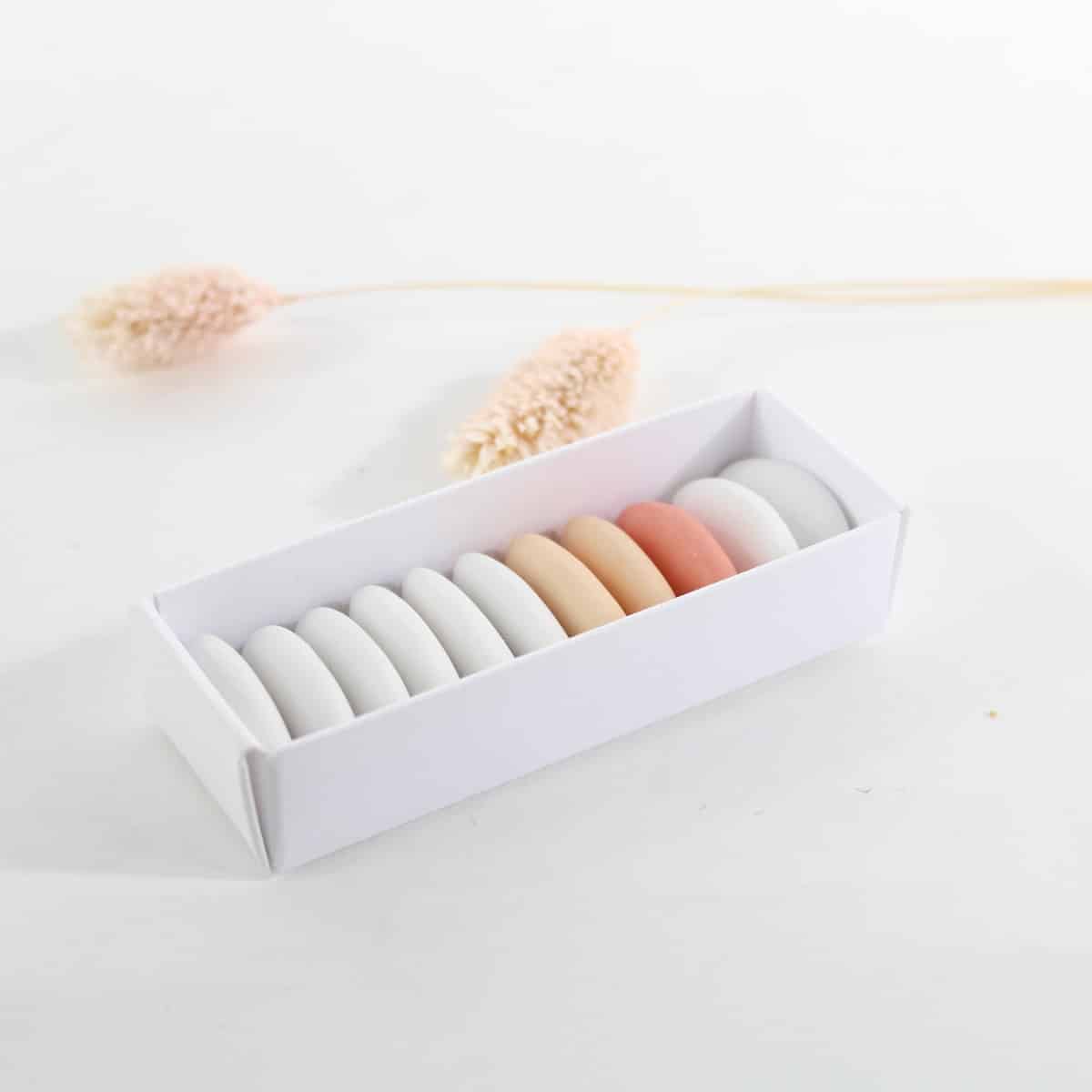De suikerbonen passen mooi op een rijtje in het doosje.