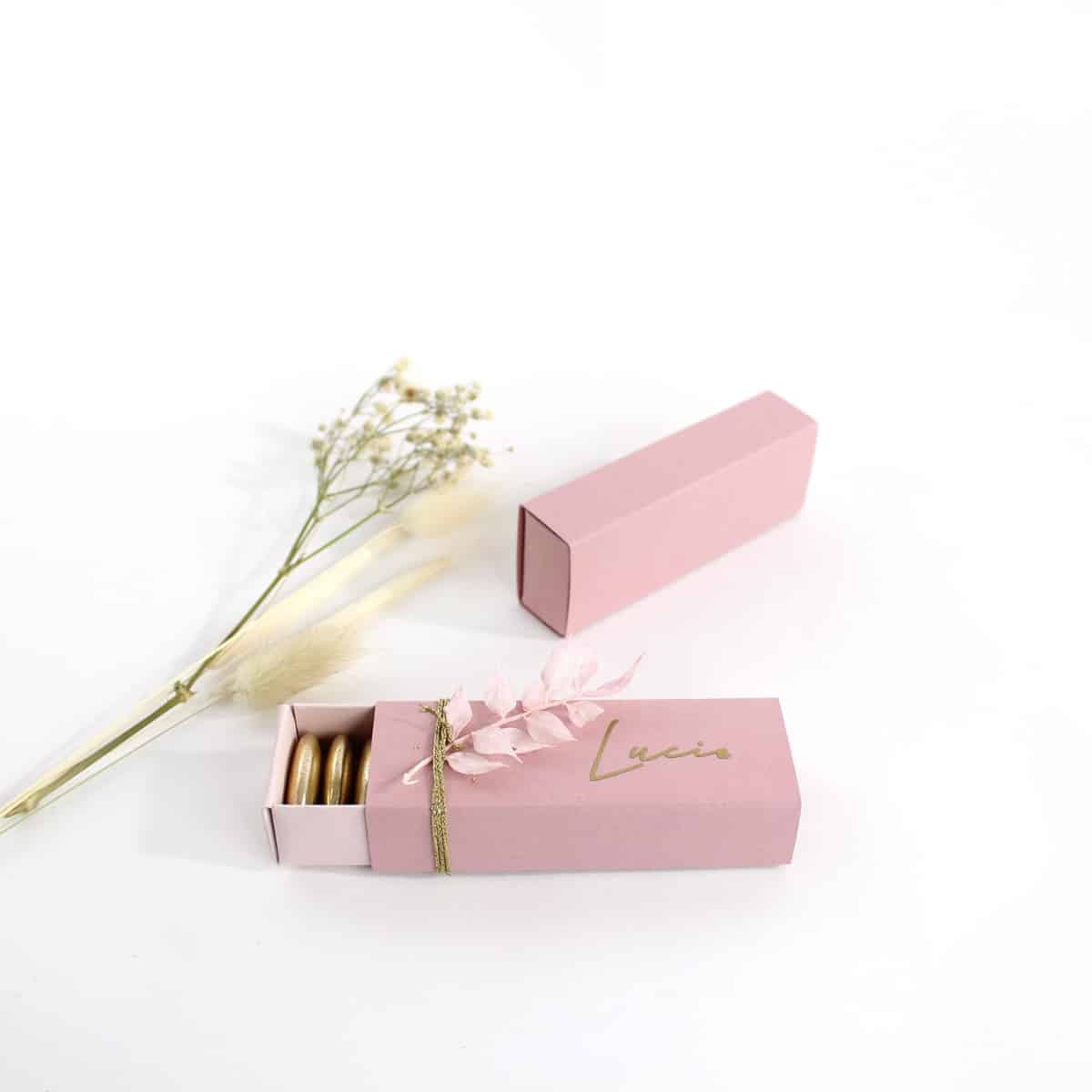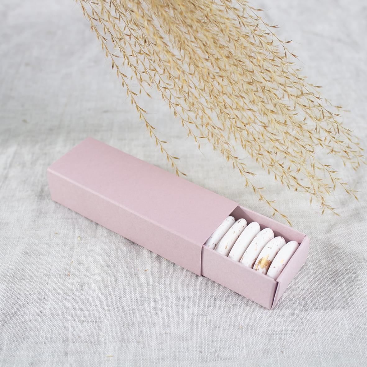 De suikerbonen passen mooi op een rijtje in het doosje.