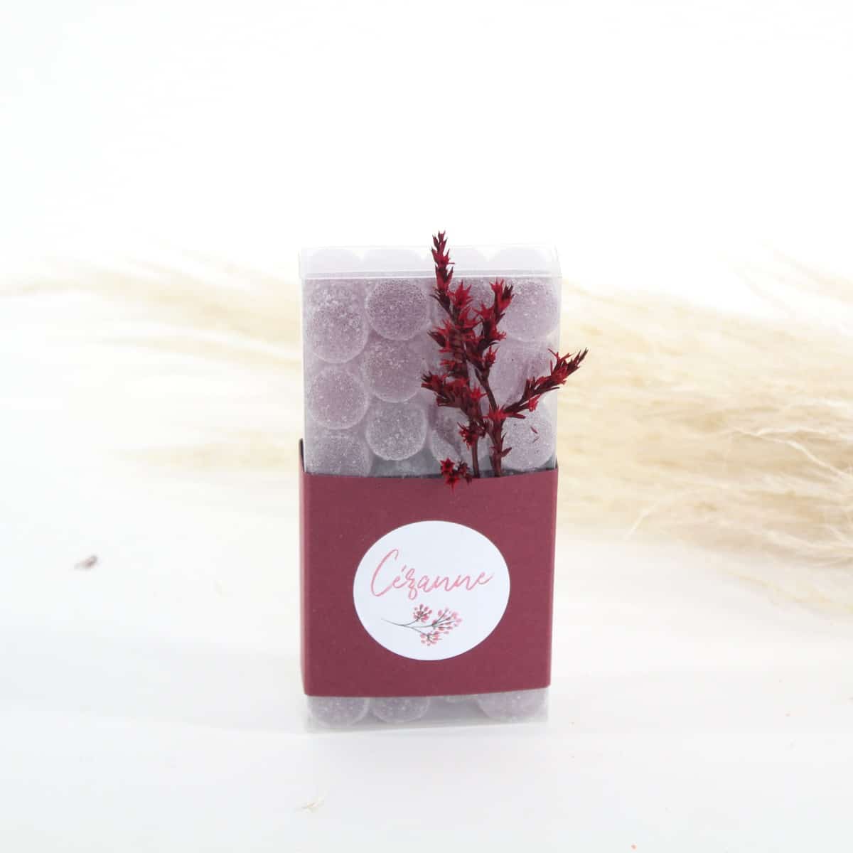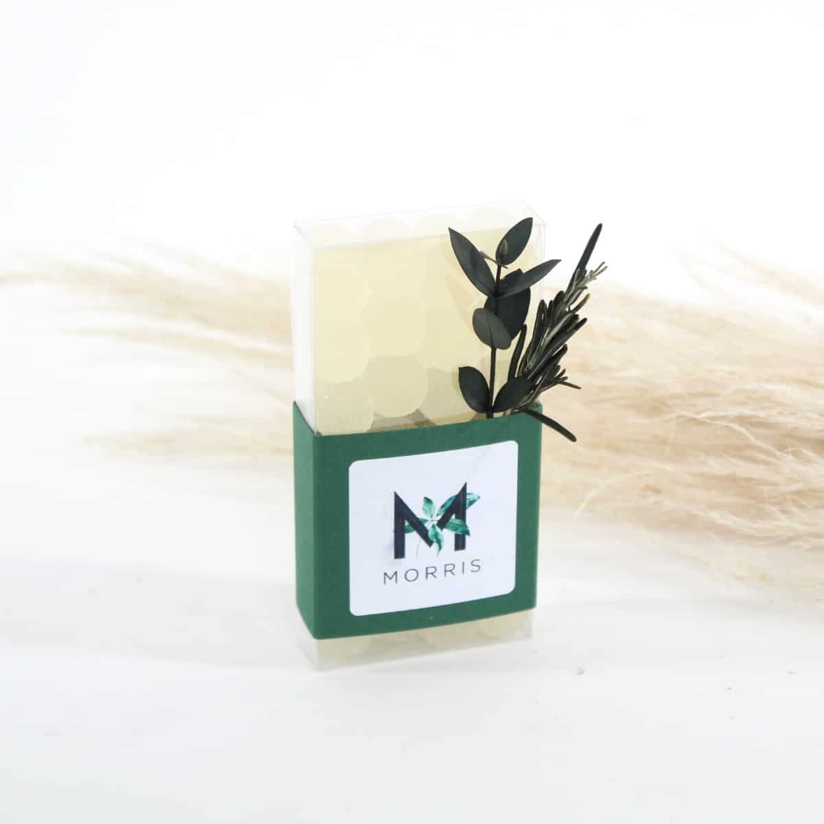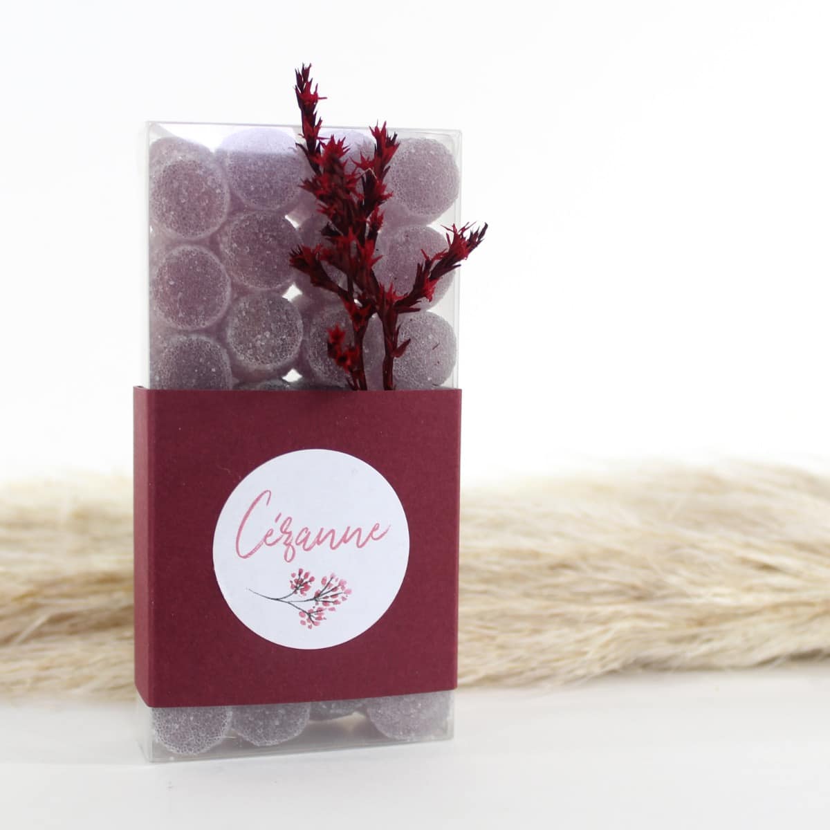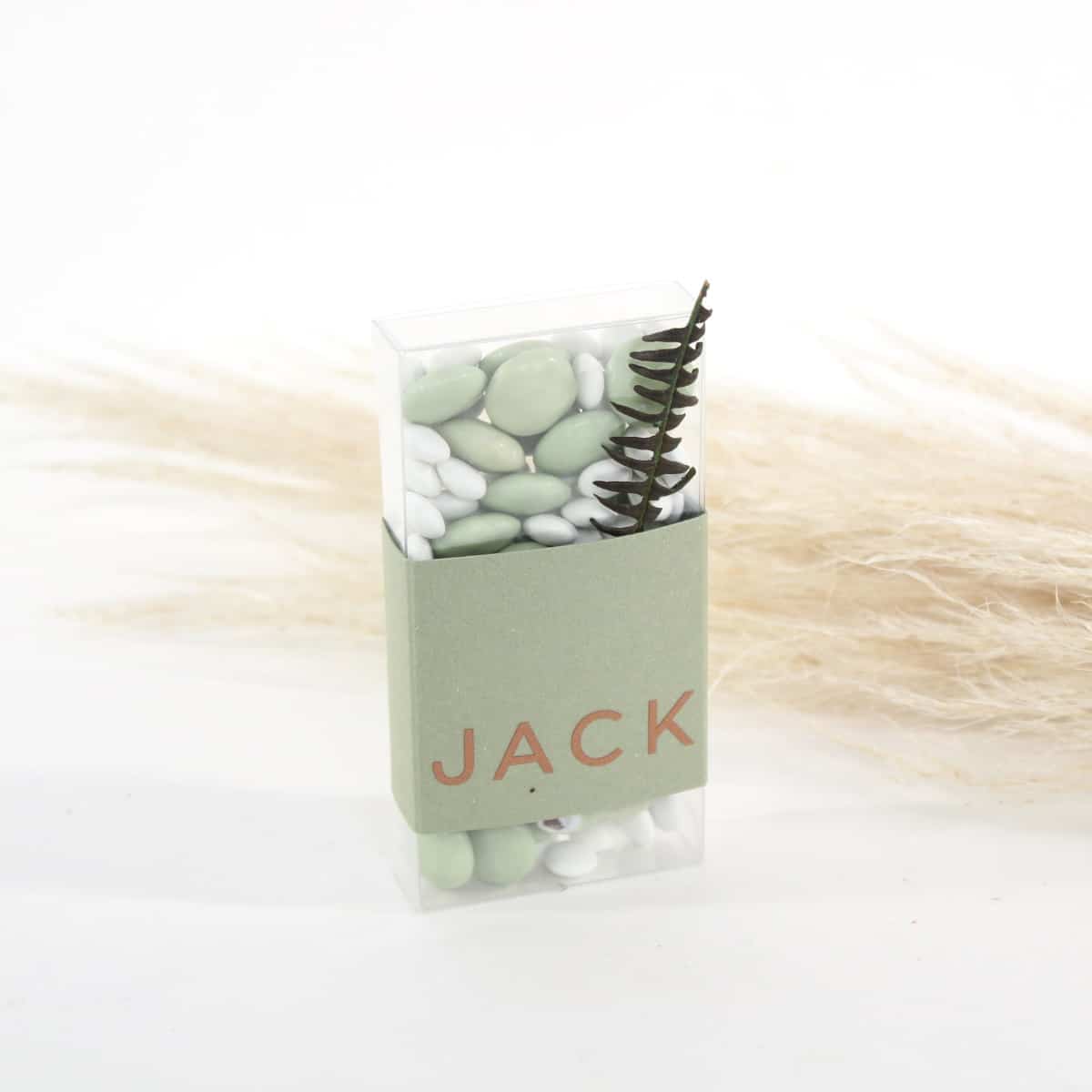 Werk af met een stickertje op de sleeve en/of steek een aantal takjes droogbloemen achter de sleeve.