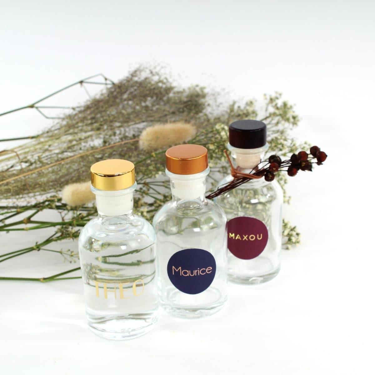 Vul ze met een lekker (al dan niet) alcoholisch drankje. Werk af met een vinyl sticker, ronde sticker of houten label.