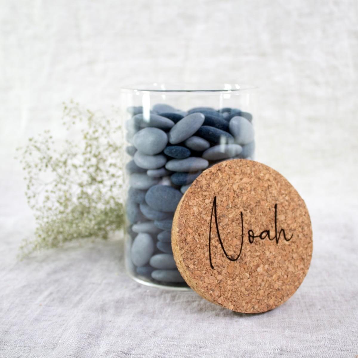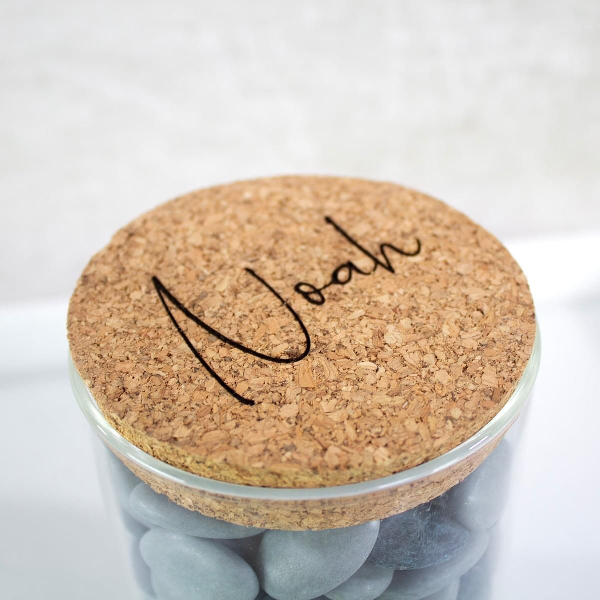 Uitdeelpot kurk 700ml transparant (incl. gravering)