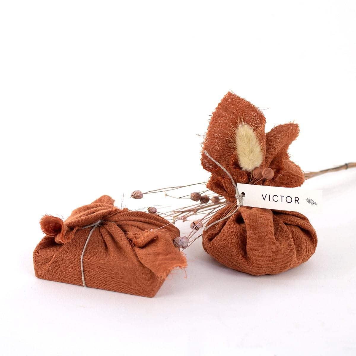 Werk af met een touwtje of elastiek. Ga voor een (houten) label en knoop een bloemetje eraan.
