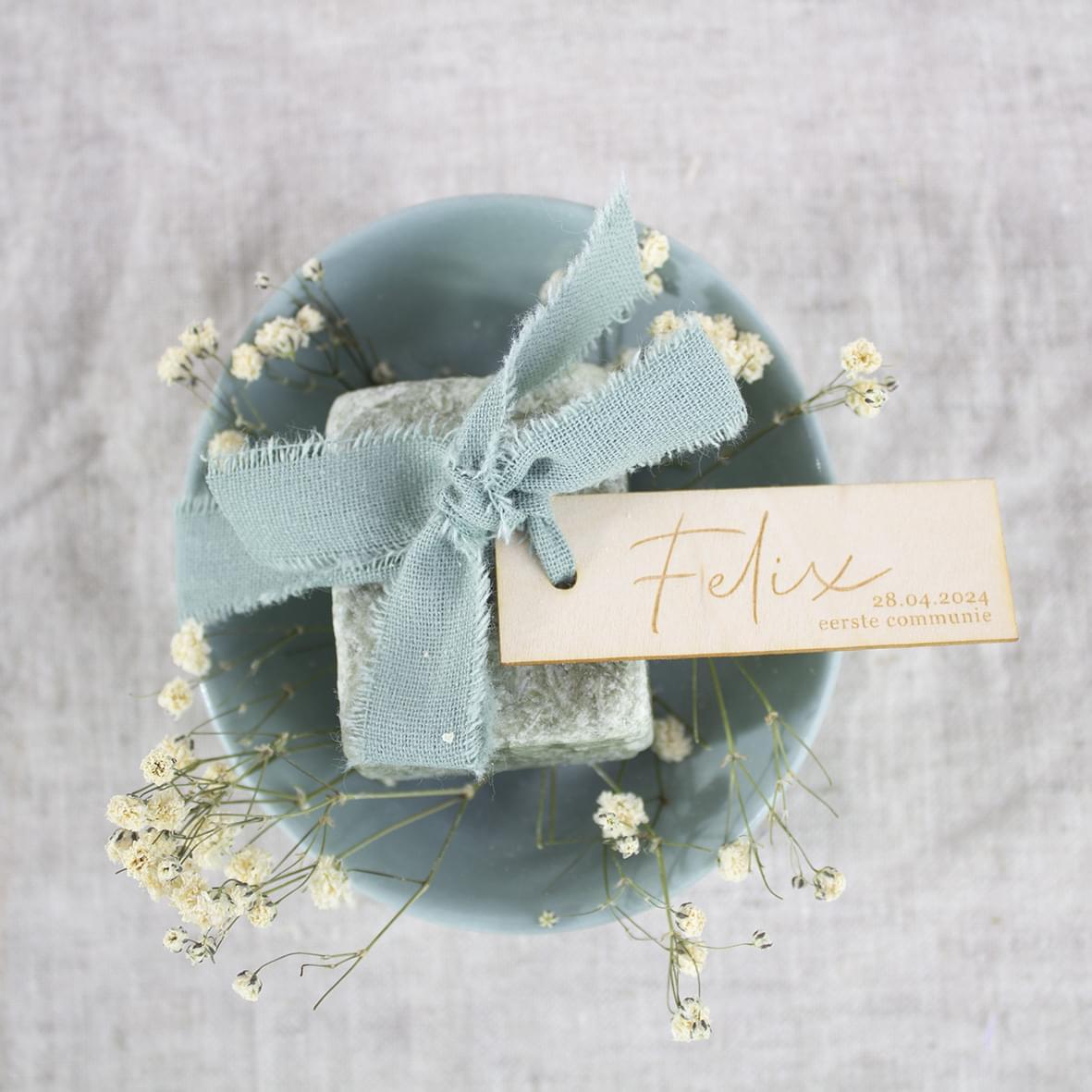 - Lint om rond het schaaltje te binden (kleur naar keuze)