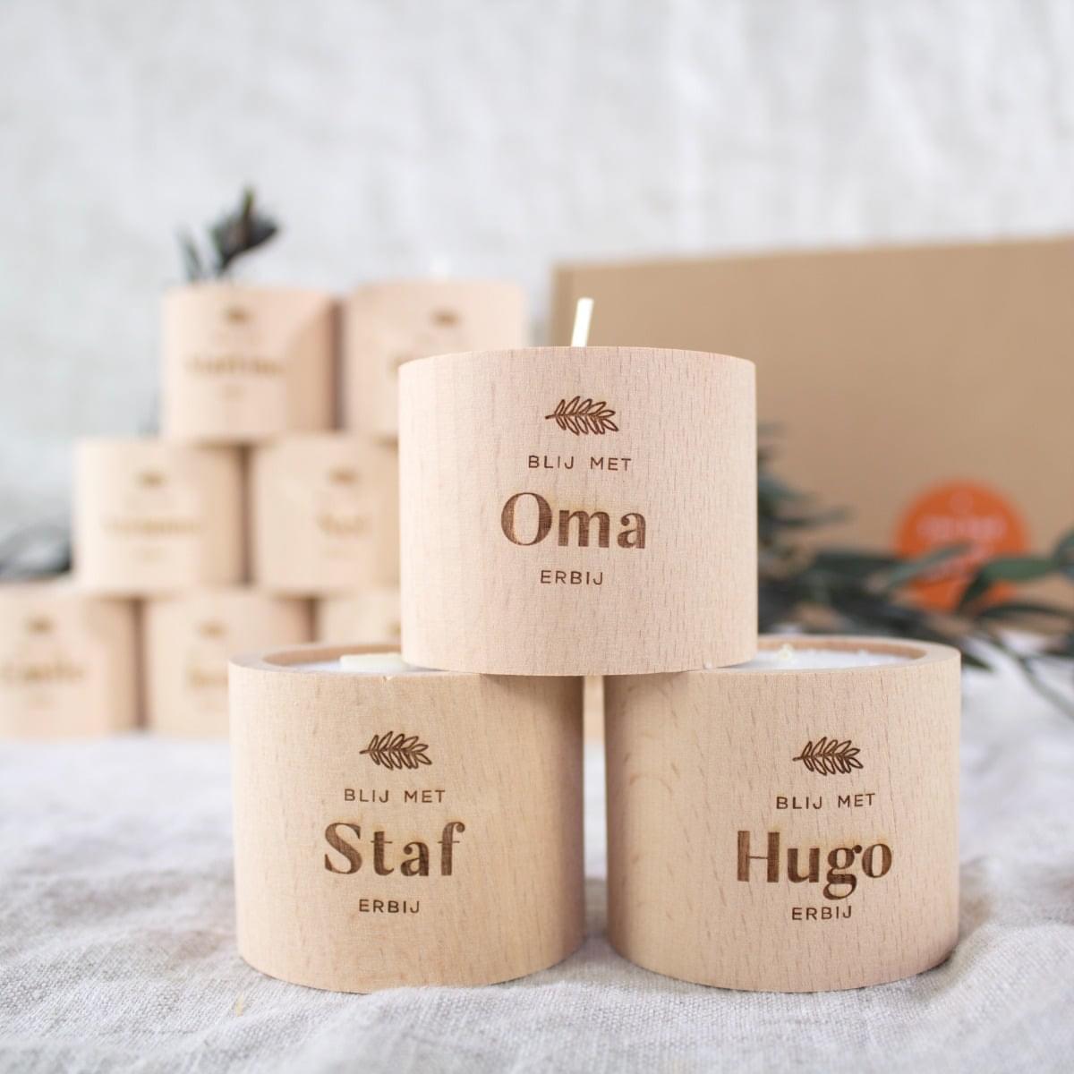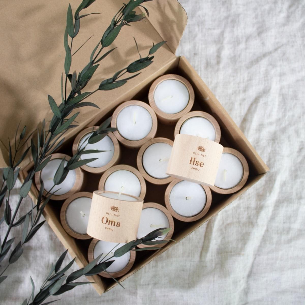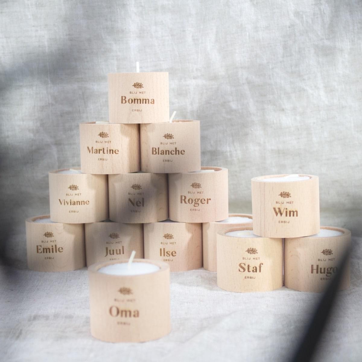 Gepersonaliseerde houten kaarsjes (set van 12)