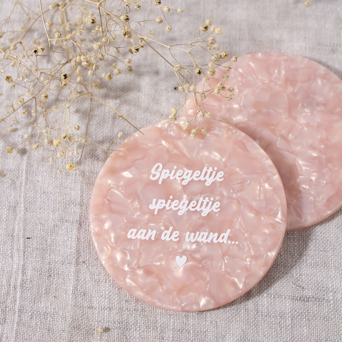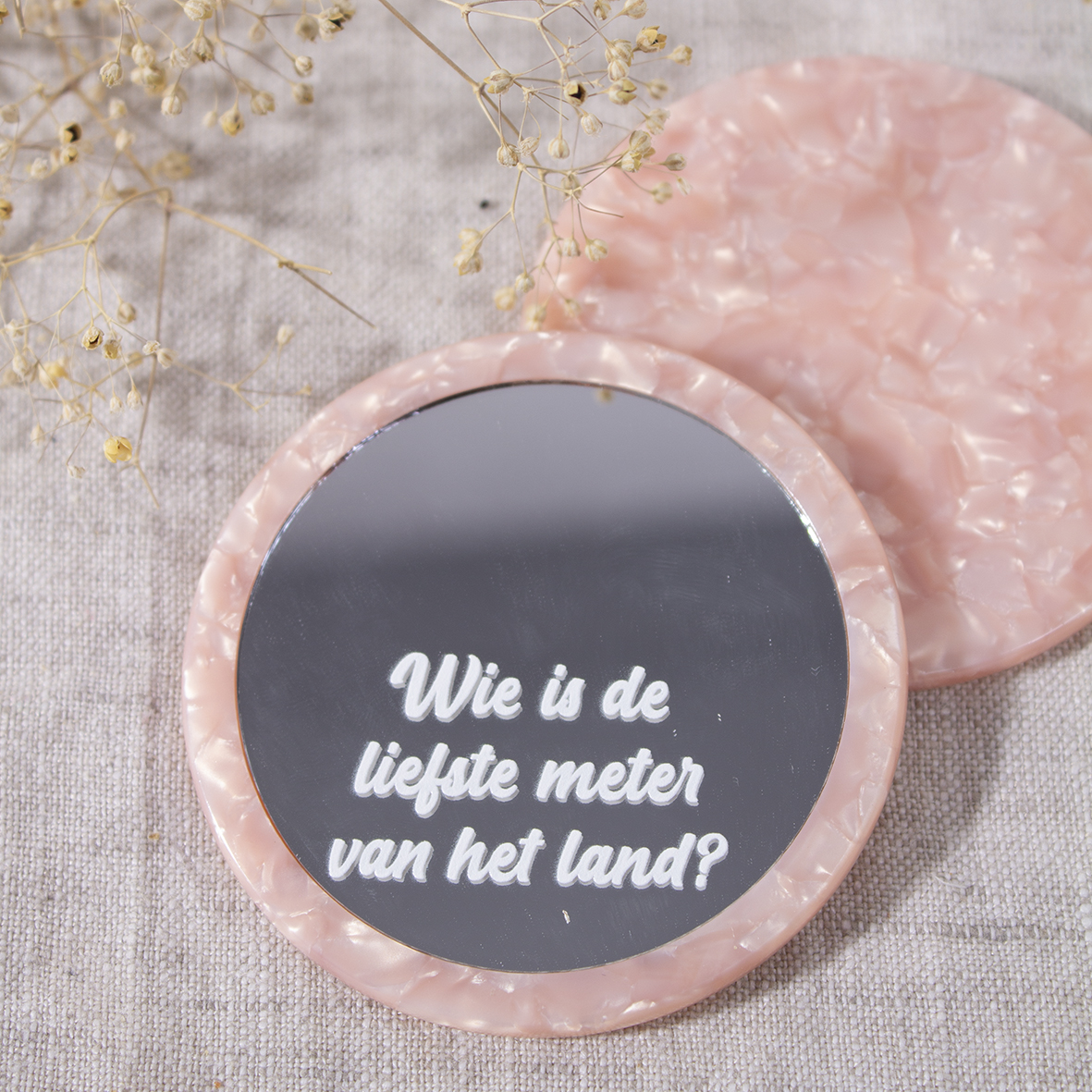 – Handspiegeltje met tekst ‘Spiegeltje spiegeltje aan de wand’ – Wie is de liefste meter van het land