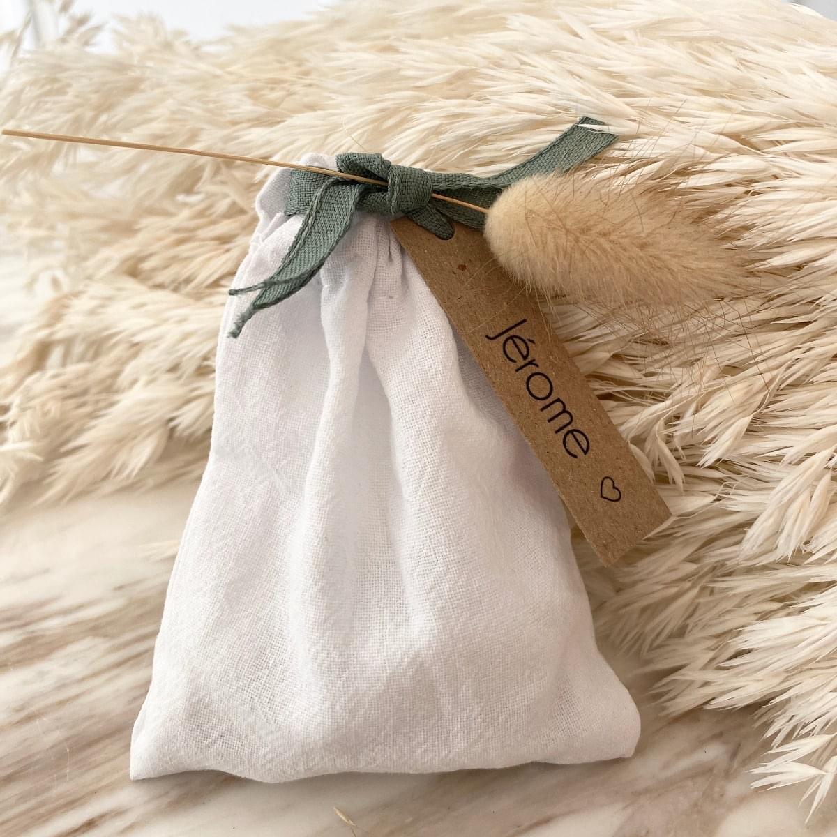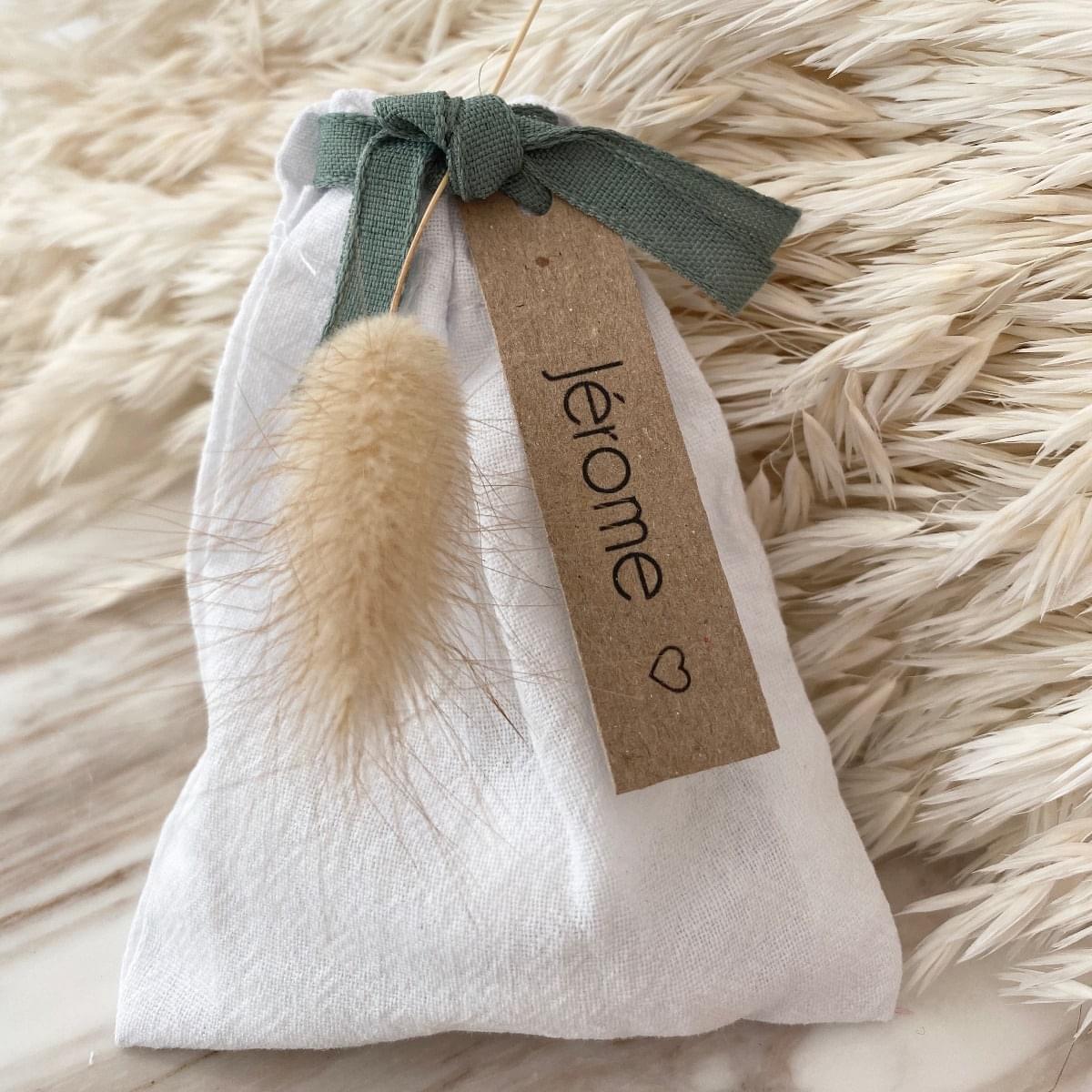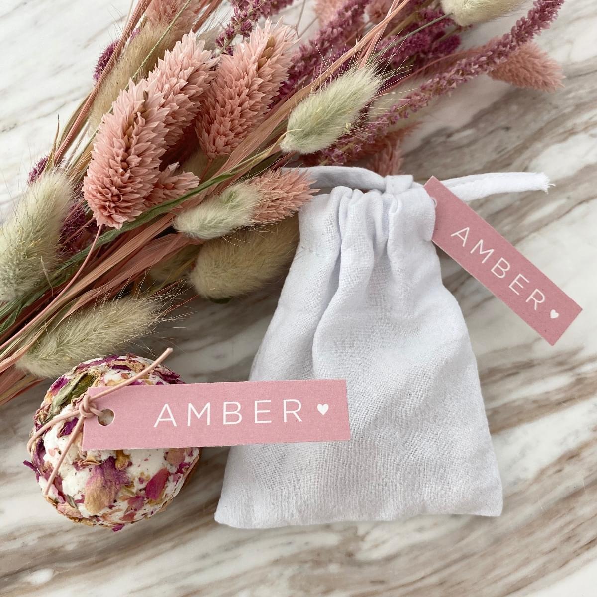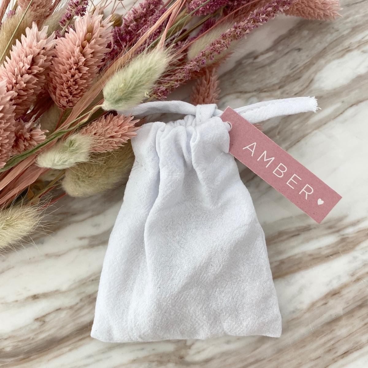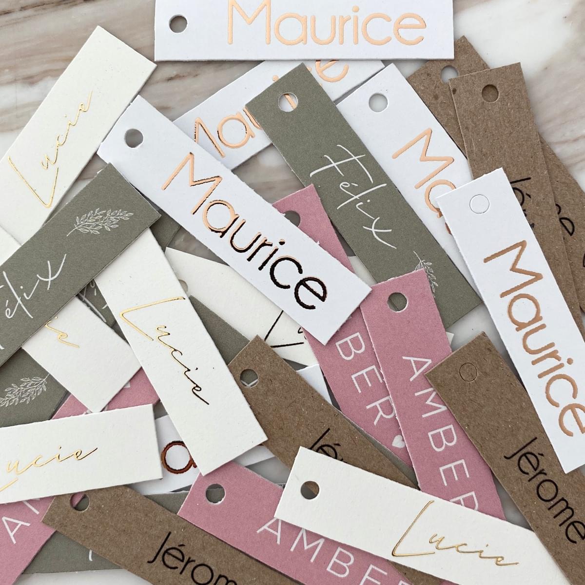 Label van 60mm x 15mm (perforatie 3mm) met naam in folie.