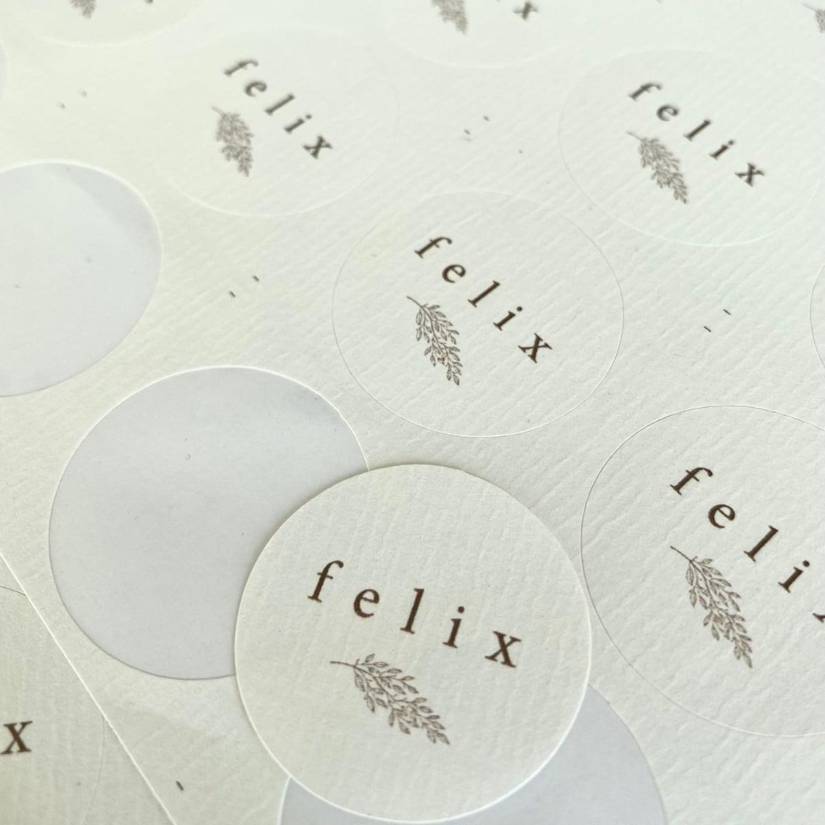 Sticker 30mm doorsnede (rond) op structuur offwhite papier