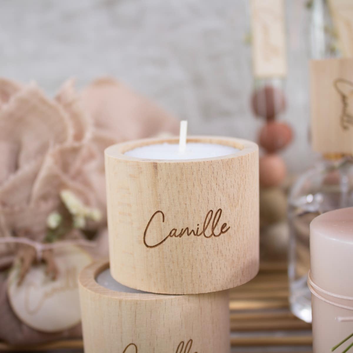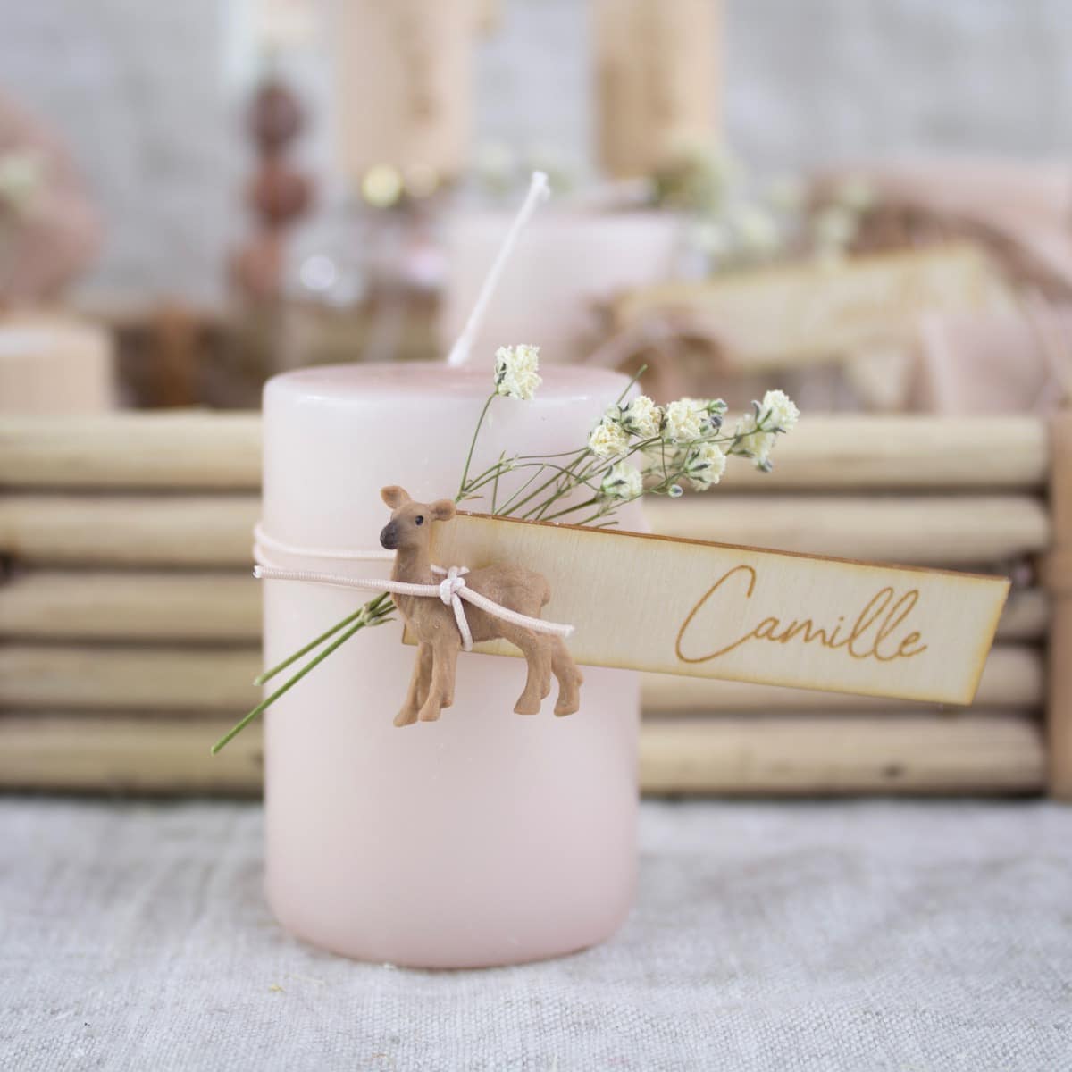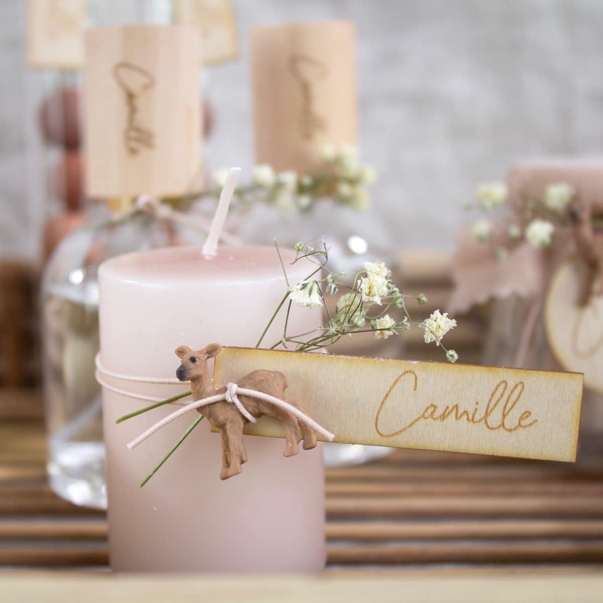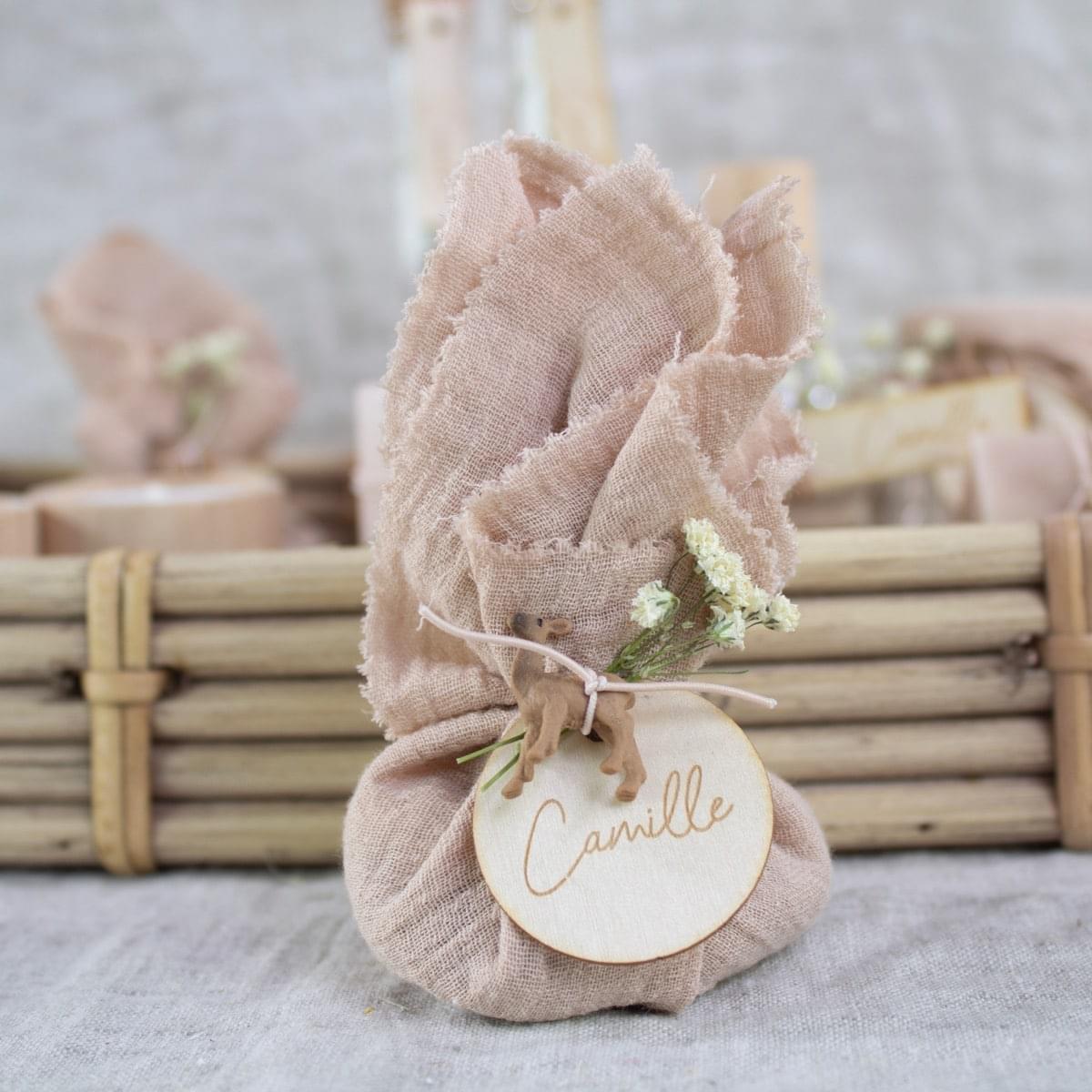 – Tetra wikkel blush met hertje + rond houten label met naam