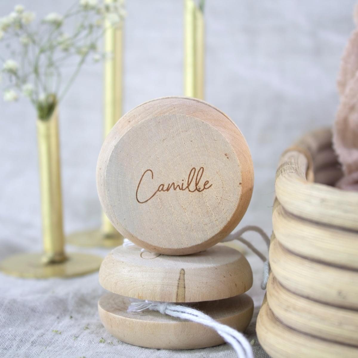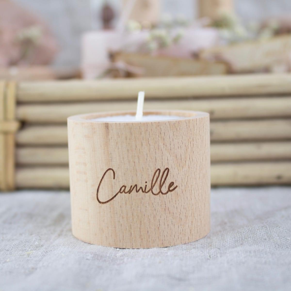 – Roomspray (gevuld met roomspray “Cotton”) met gravering van de naam op de houten dop