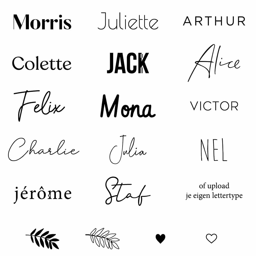 Kies één van onze lettertypes of geef zelf een eigen lettertype door.
