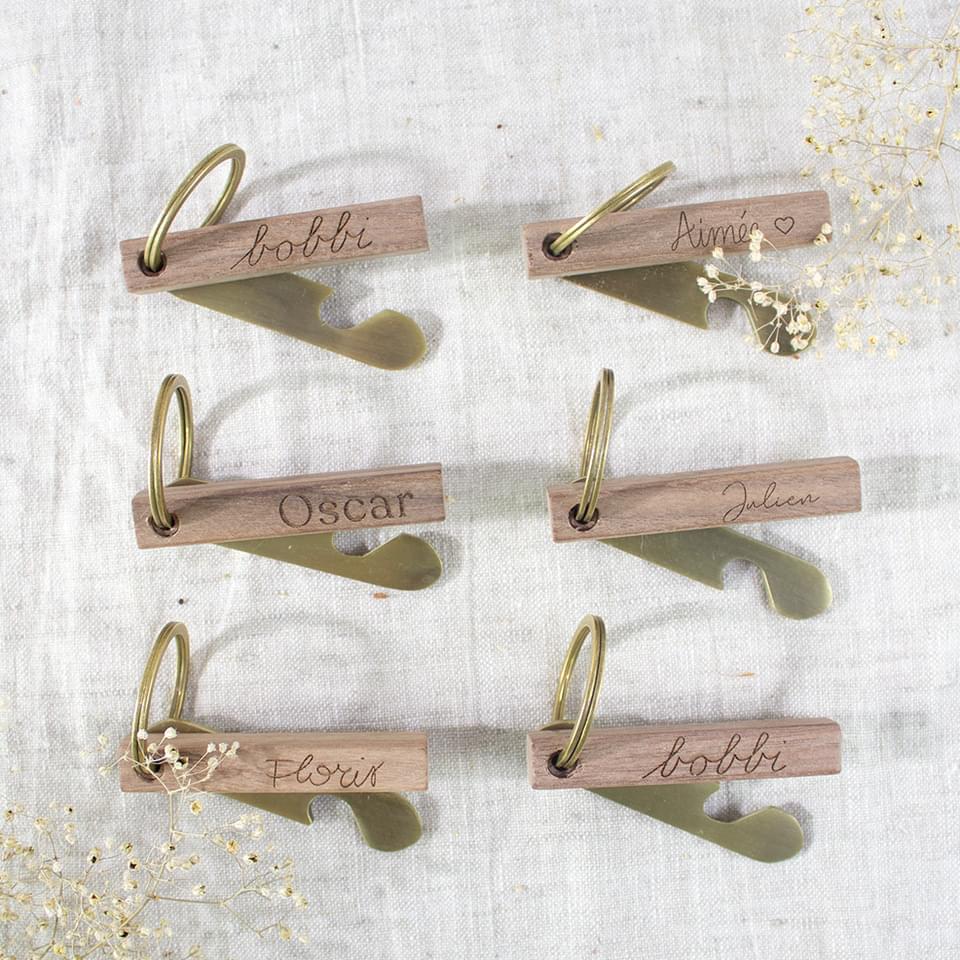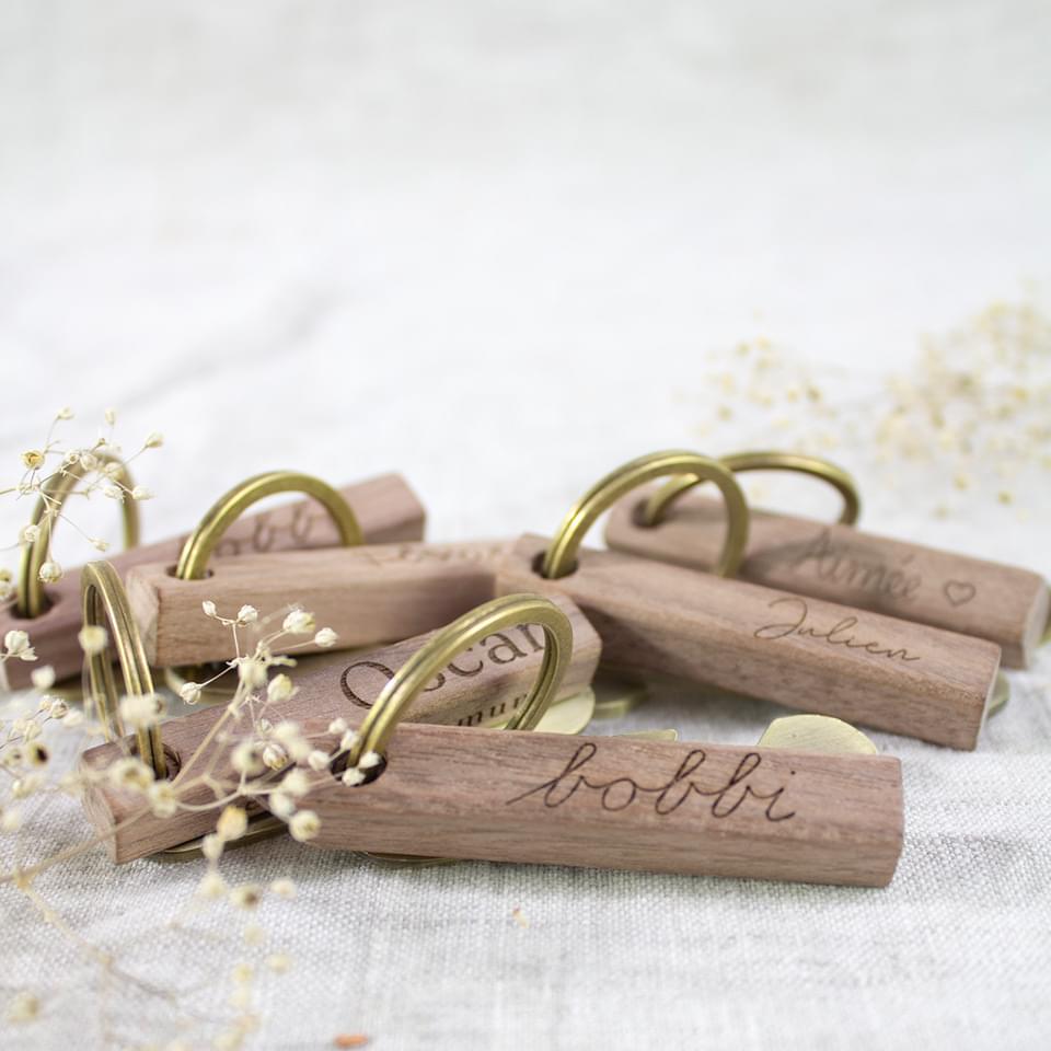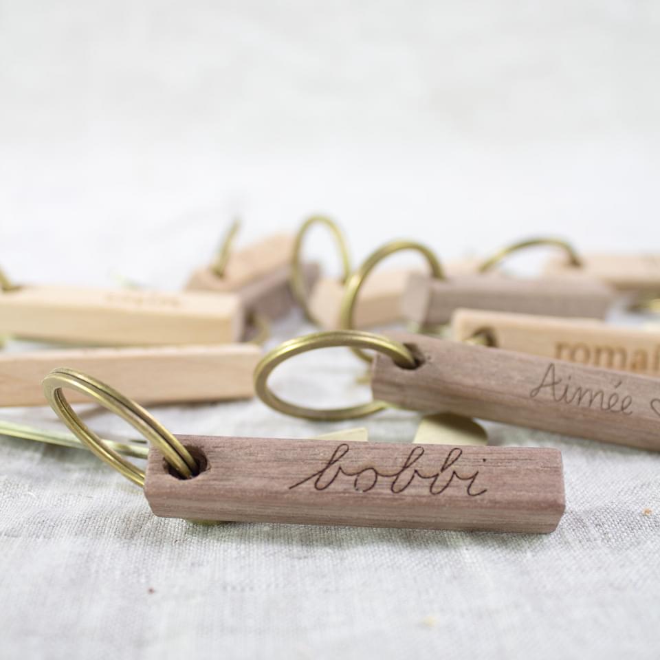 Deze sleutelhanger personaliseren we door te graveren met de naam.