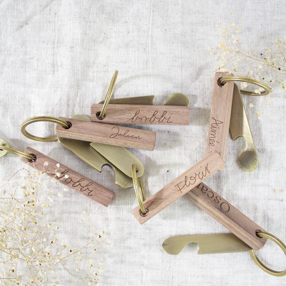 Er hangt ook een mat gouden flesopener aan de sleutelring.