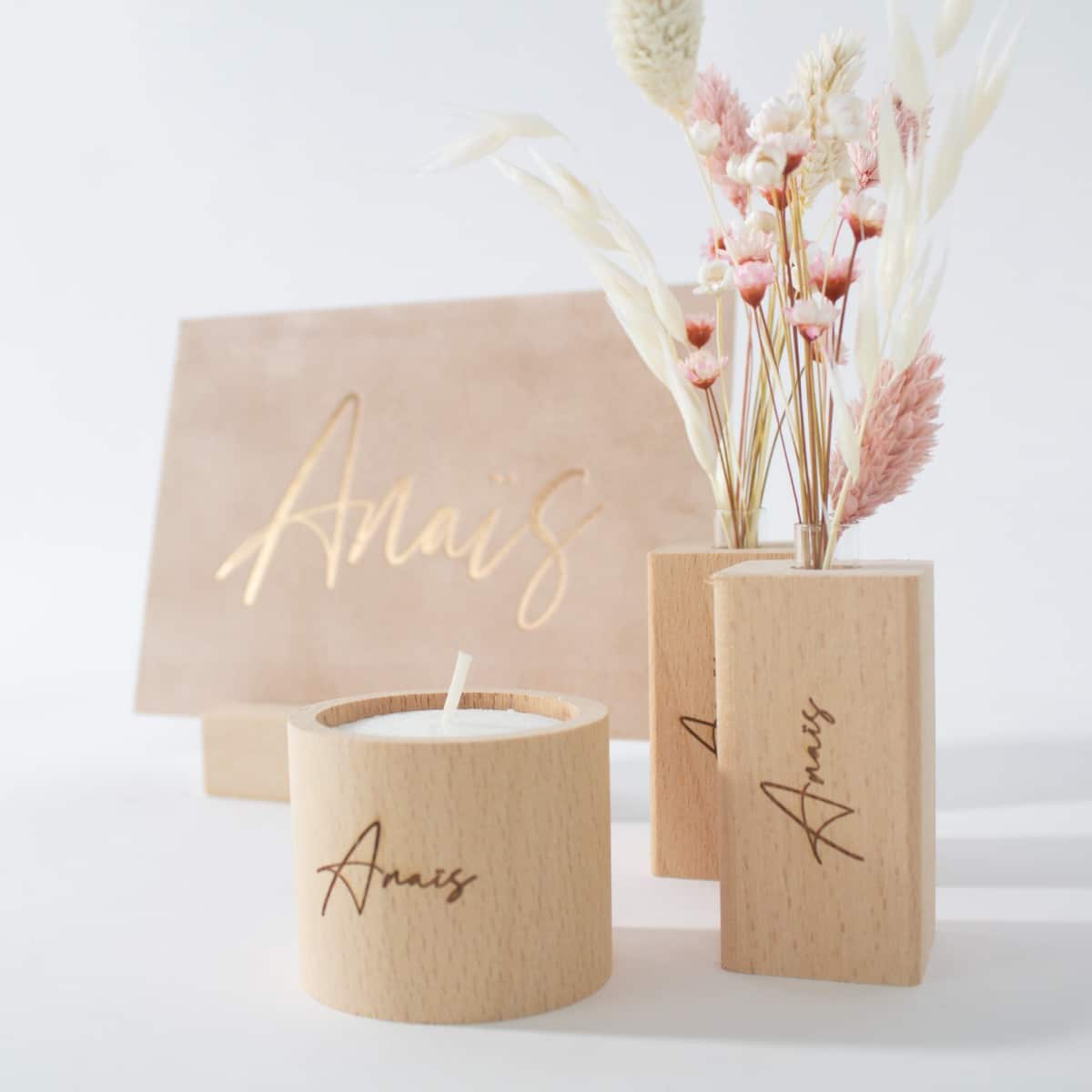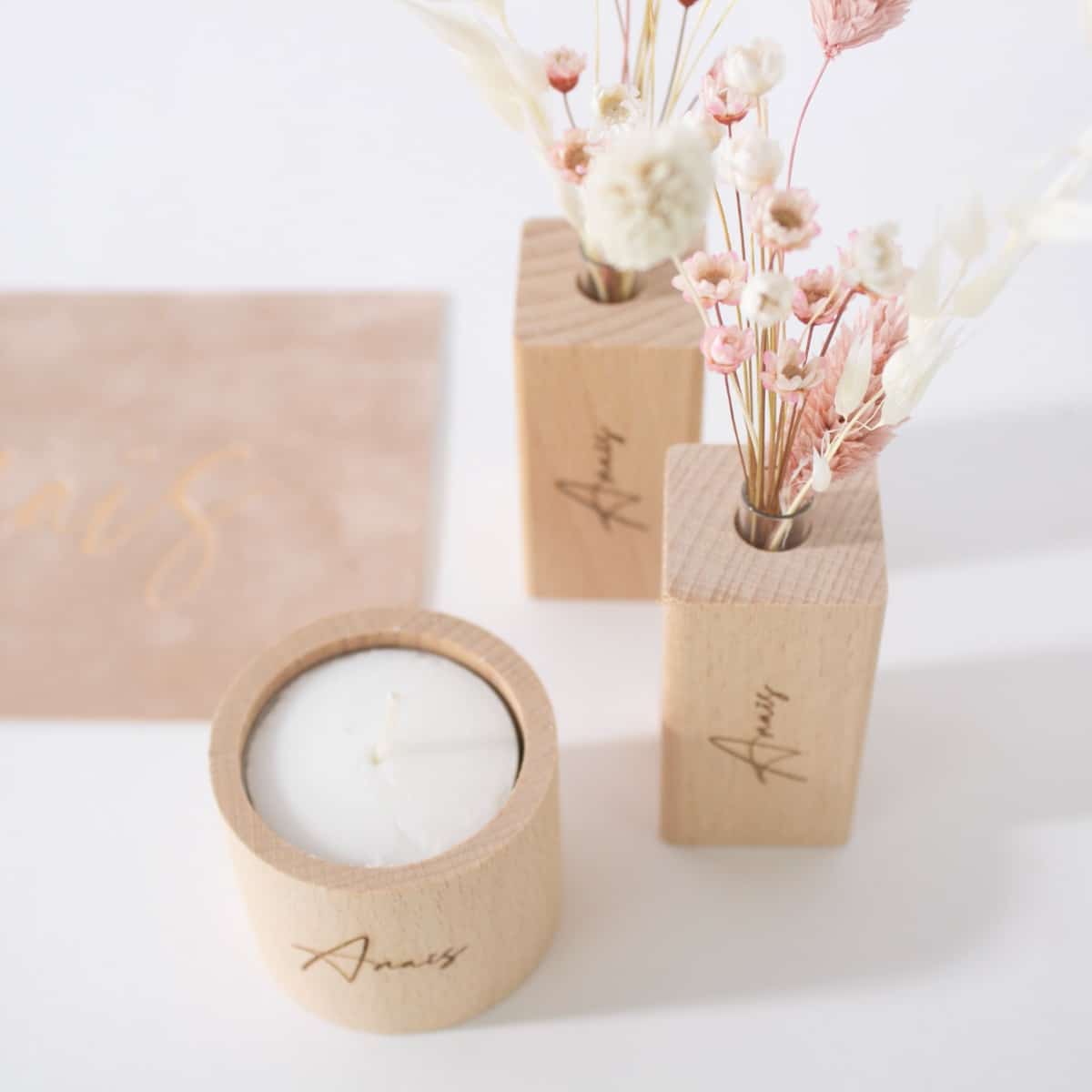 Combineer met de houten kaarshouders en de kaarthouder in hetzelfde hout.