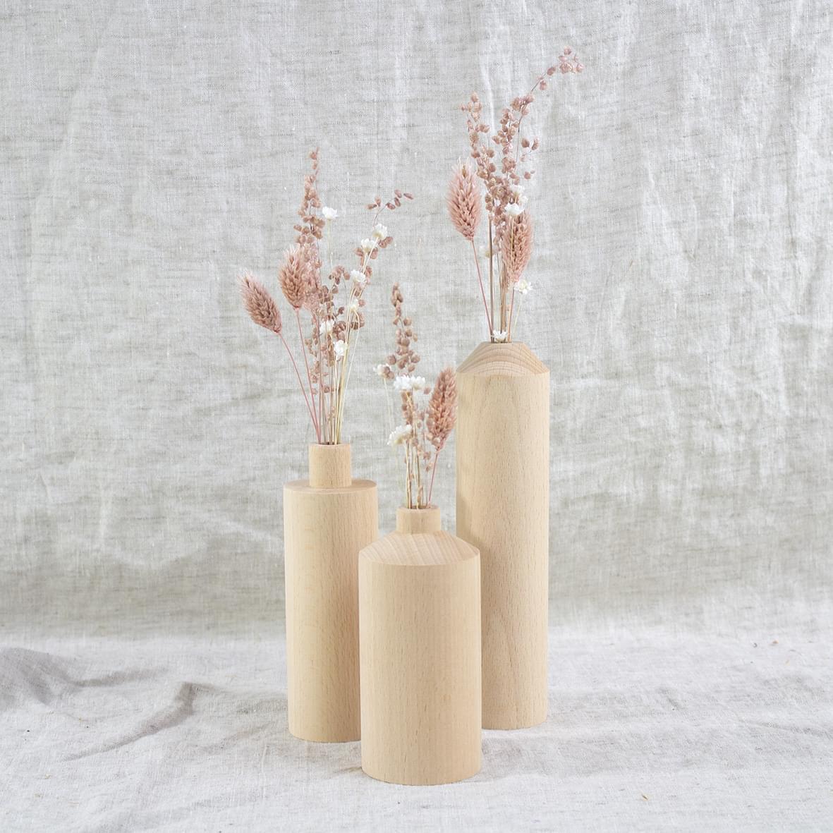 Deze houten vaasjes zijn een perfecte aanvulling op de naturel tray in combinatie met de andere naturel houten producten.