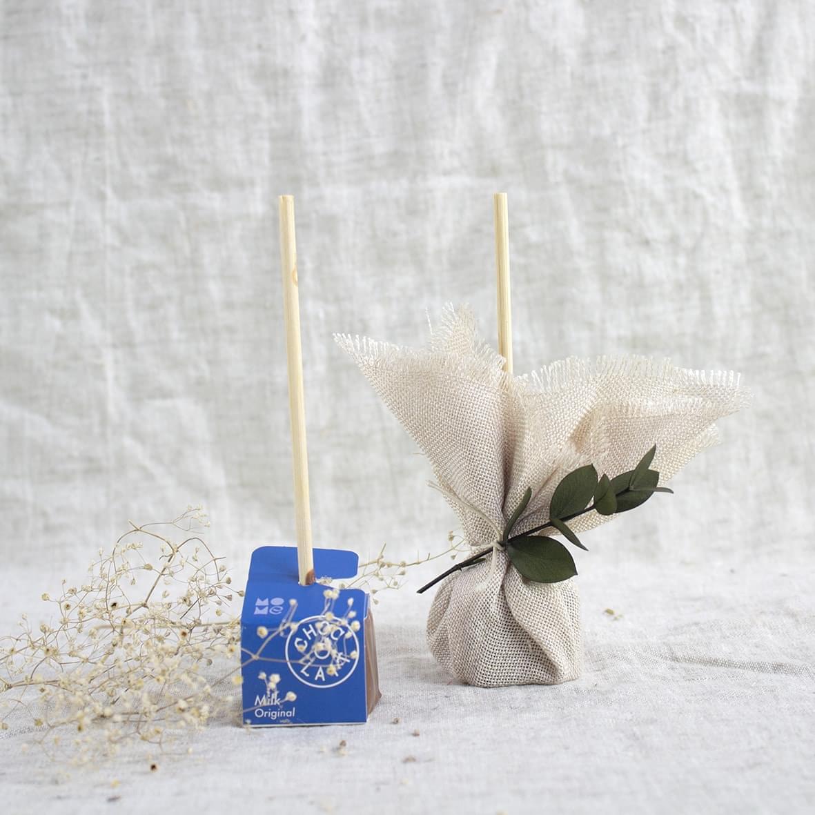 Verpak ze in een wikkel (voeg eventueel nog wat chocolade koffiebonen toe), werk af met een houten label. Klaar!