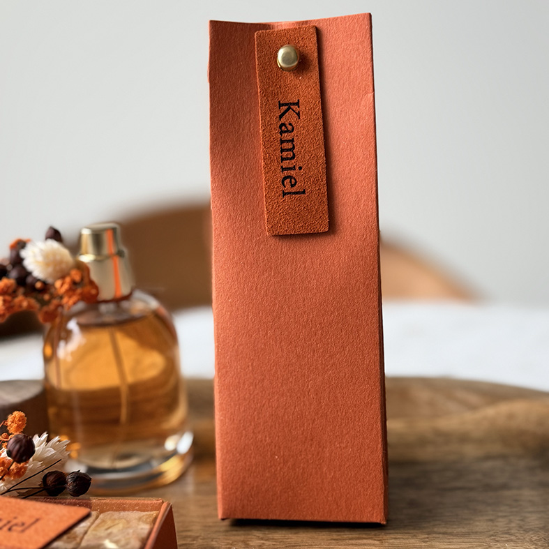 – Hoog doosje roest met marmer gouden eitjes en suède label