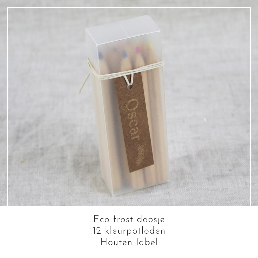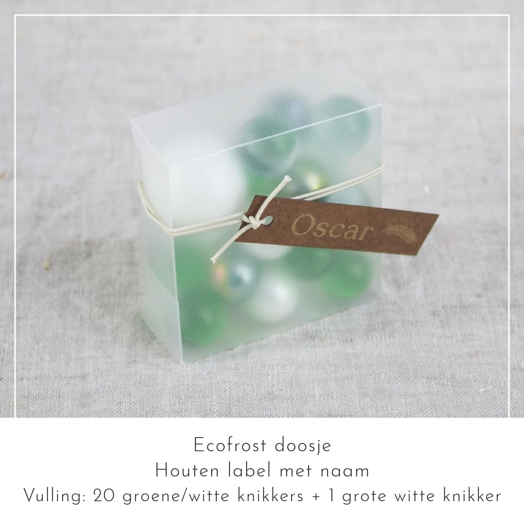 – Eco frost doosje met speelgoed knikkers + houten label met naam