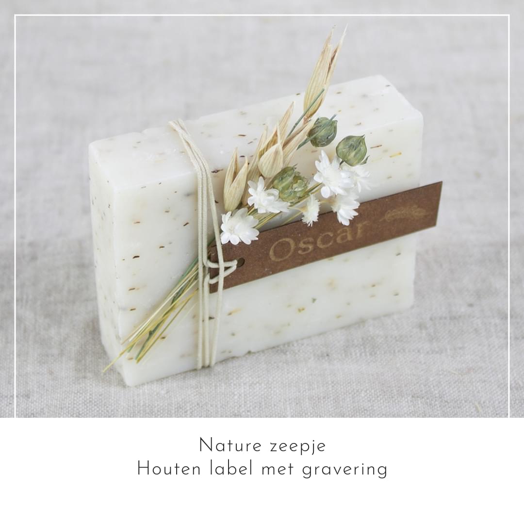 – Houten labels zijn standaard walnoot hout. Je kan dit aanpassen naar naturel hout.