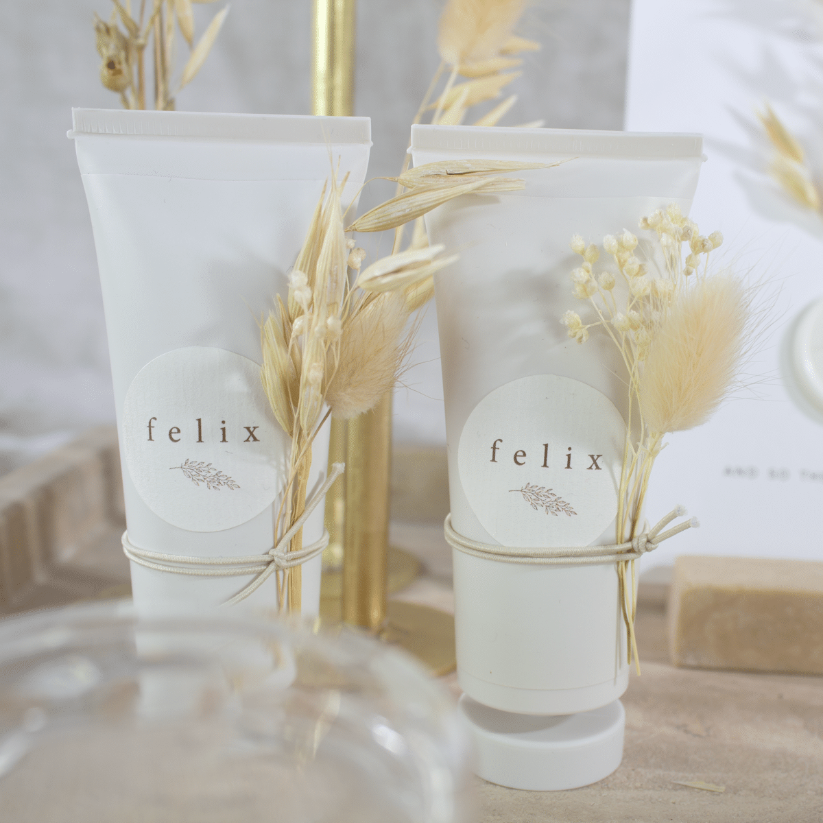 De tube heeft een offwhite kleur. Werk af met een ronde sticker of een vinyl sticker.