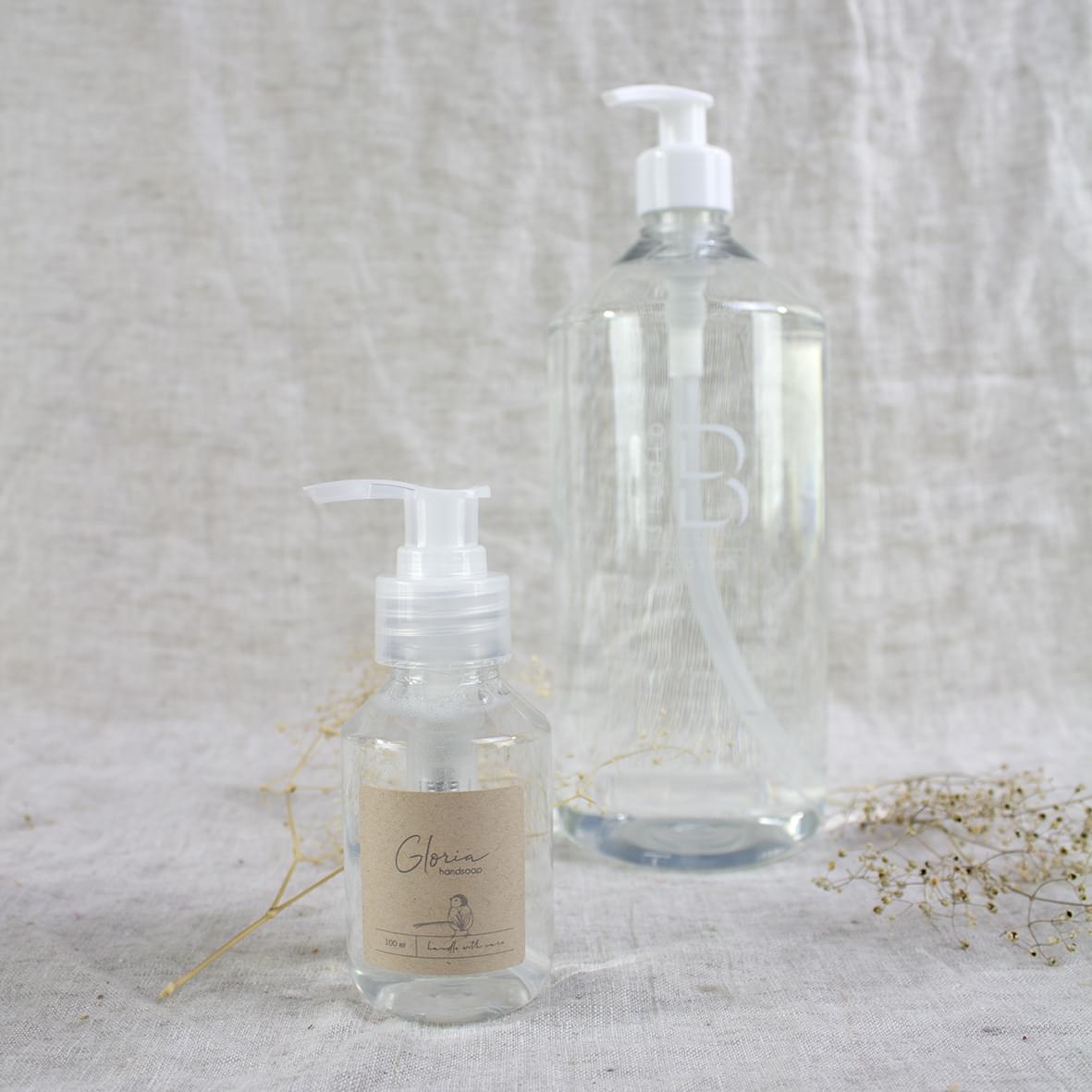 De zeep zit in een handige fles met pompje zodat je gemakkelijk kleine zeepflesjes kan vullen.