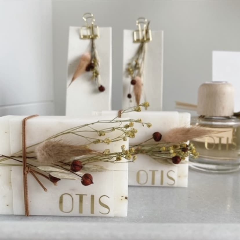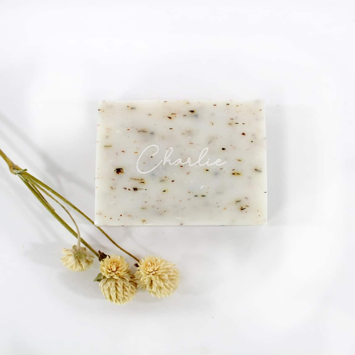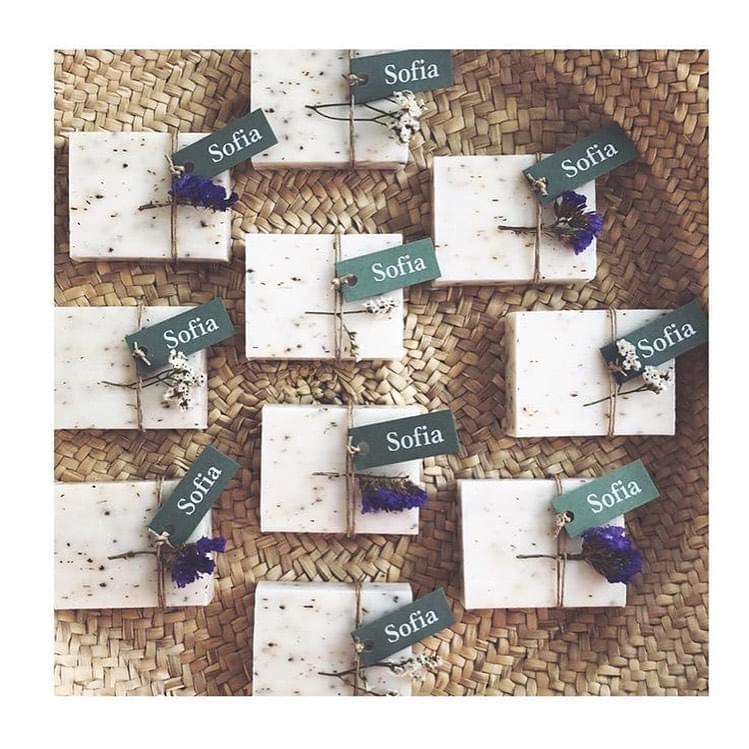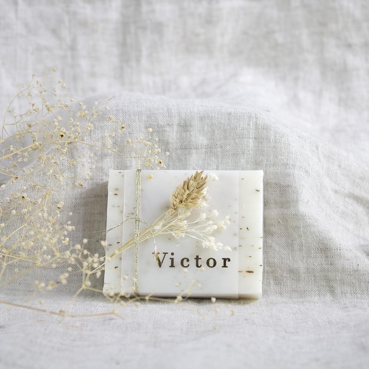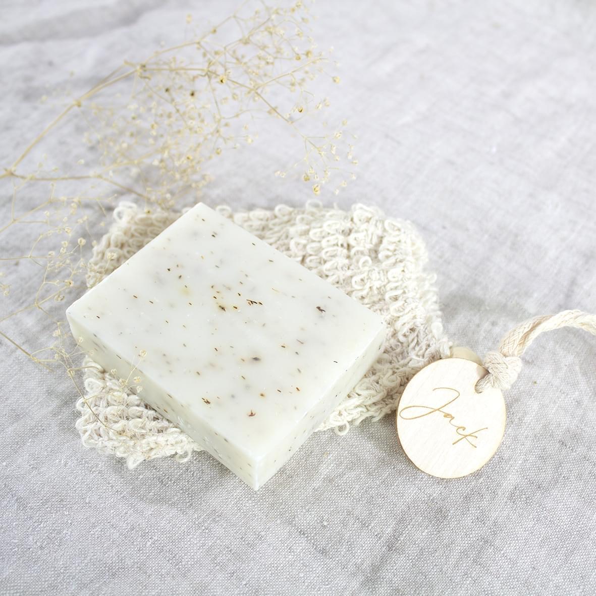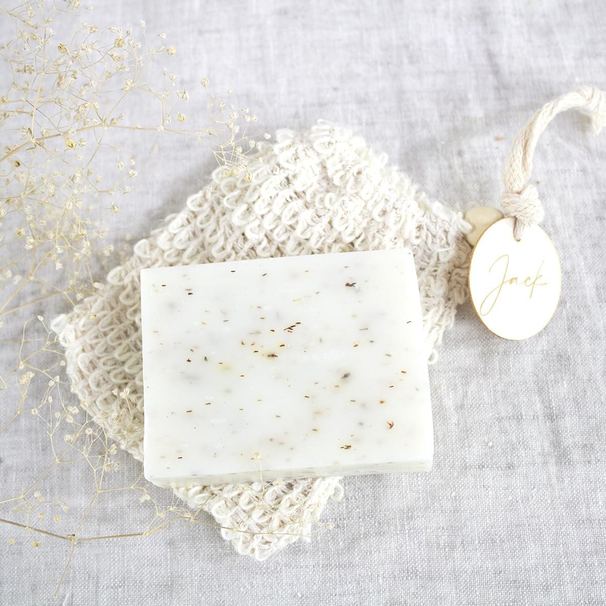 Werk af met een kalkpapier wikkel (apart bij te bestellen) om een vinyl sticker erop te kleven. Ga voor een houten label of laat het zeepje graveren.