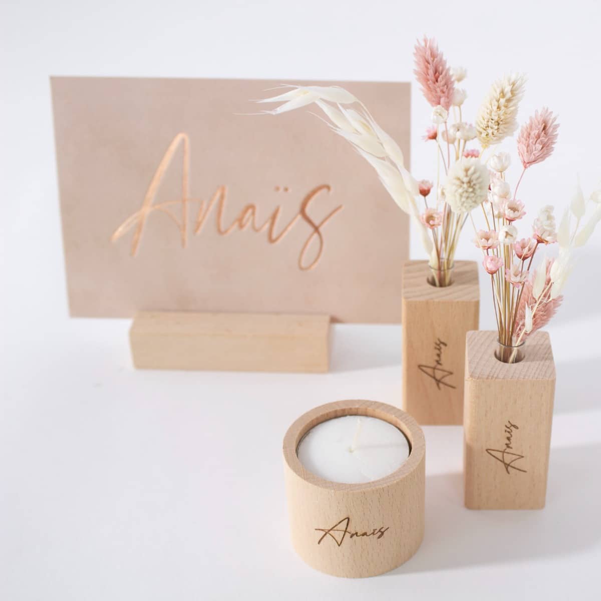 Combineer met de houten vaasjes en de kaarthouder in hetzelfde hout.