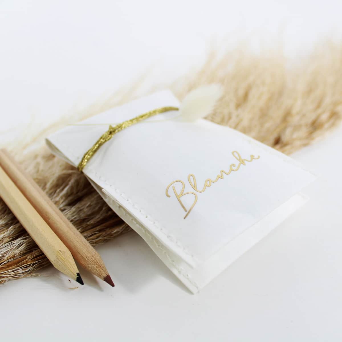 Afwerken met een vinyl sticker en een takje / droogbloem: een ideaal duurzaam uitdeelcadeautje