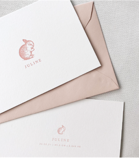 De communicatie verloopt van het eerste tot het laatste moment met Amber, gaande van een afspraak maken, tot ontwerp en de druk. Ben je dus op zoek naar een persoonlijke en vlotte aanpak, dan ben je bij ons aan het juiste adres. Onze kaartjes worden gedrukt op kwalitatieve papiersoorten, met diepdruk, blinddruk of foliedruk, of op velvet in een ruim assortiment aan kleuren.